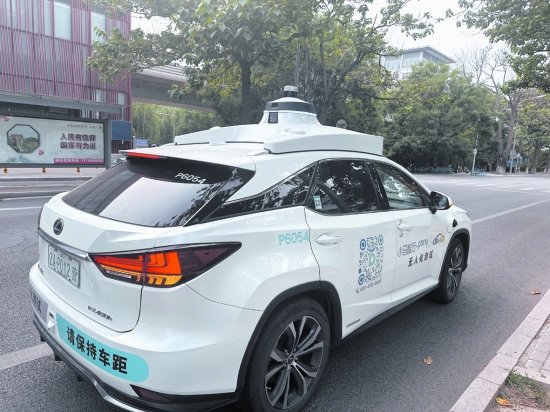 蘑菇车联研发的车路云一体化自动驾驶巴士 本版图片均为本报记者 李嫒嫒 摄