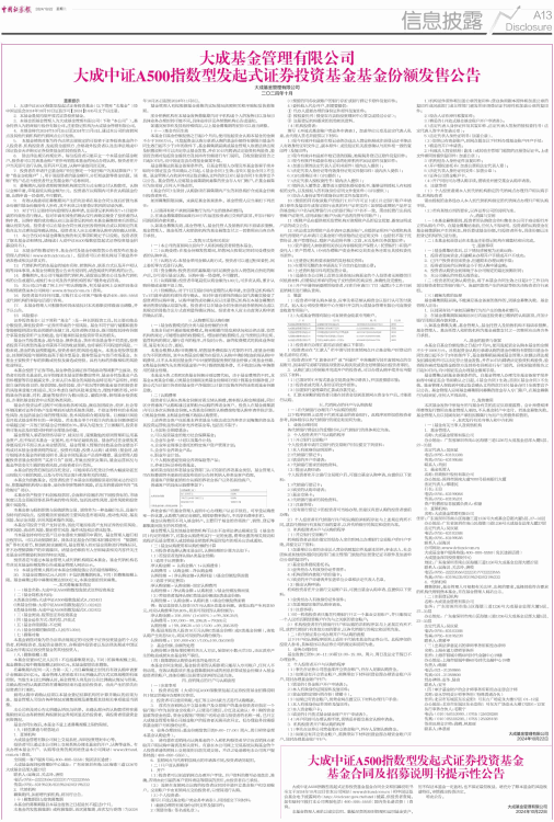 大成中证A500指数型发起式证券投资基金基金份额发售公告