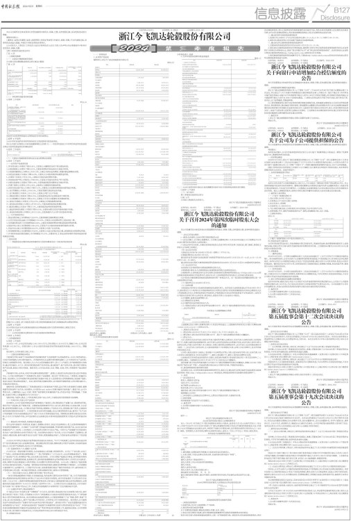 浙江今飞凯达轮毂股份有限公司(以下简称“公司”)第五届董事会第十九次会议于2024年10月30日在公司会议室以现场与通讯结合方式召开,本次会议的通知已于2024年10月25日以电子邮件形式发出。本次会议由董事长葛炳灶先生召集并主持,应出席董事8名,亲自出席董事8名,其中叶龙勤先生、虞希清先生、王亚卡先生、胡剑锋先生、屠迪女士以通讯方式参加。公司监事和部分高级管理人员列席了会议。本次会议符合《中华人民共和国公司法》和《公司章程》的有关规定。