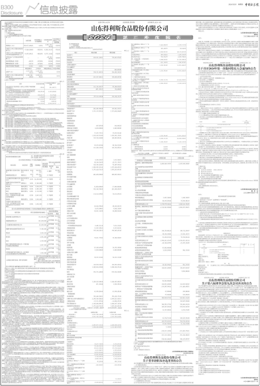 2024年10月30日下午14:00,山东得利斯食品股份有限公司(以下简称“公司”)第六届董事会第九次会议在山东省诸城市昌城镇得利斯工业园公司会议室召开。本次会议通知及补充通知已分别于2024年10月21日、2024年10月29日以电话和微信的方式通知各位董事、监事、高级管理人员。会议召开采用现场表决和通讯表决相结合的方式。会议应出席董事6人,实际出席董事6人。公司监事和高级管理人员列席了会议。