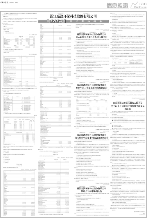 (二)审议通过《浙江嘉澳环保科技股份有限公司2024年第三季度报告》