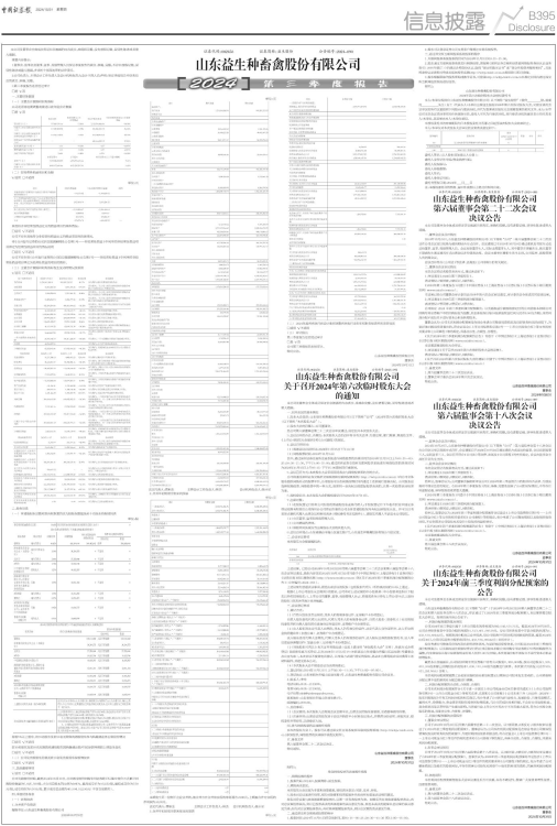 山东益生种畜禽股份有限公司(以下简称“公司”)于2024年10月29日召开第六届董事会第二十二次会议和第六届监事会第十八次会议,审议通过了《2024年前三季度利润分配预案》,本议案需提交股东大会审议。现将具体内容公告如下: