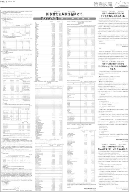 本报告已经公司董事会审计委员会全体成员事前审议通过。具体内容详见与本公告同日披露的《国泰君安证券股份有限公司2024年第三季度报告》。