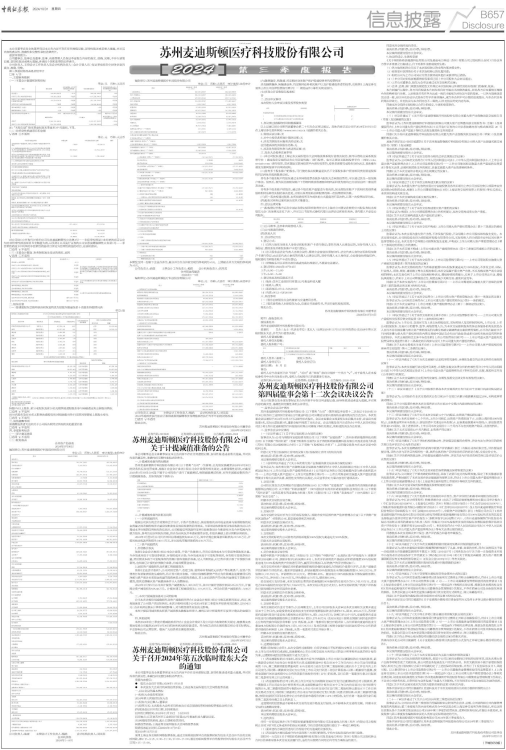 具体内容详见公司同日披露的《苏州麦迪斯顿医疗科技股份有限公司2024年第三季度报告》