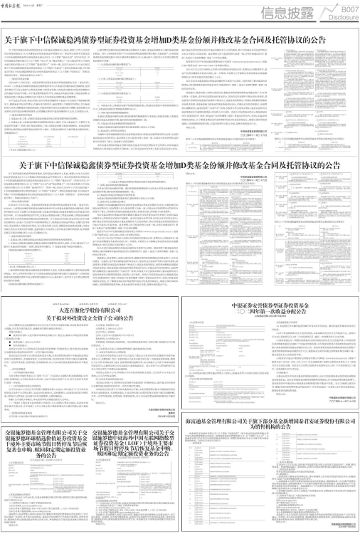 关于旗下中信保诚稳鑫债券型证券投资基金增加D类基金份额并修改基金合同及托管协议的公告