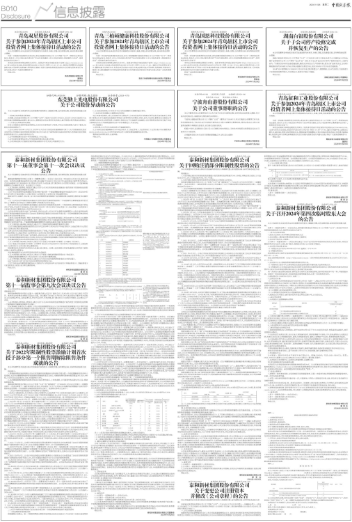 关于参加2024年青岛辖区上市公司投资者网上集体接待日活动的公告