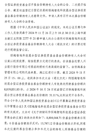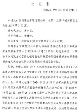 经上海市浦东新区市场监督管理局核准,恒越基金管理有限公司法定代表人已于2024年11月25日变更为郑继国先生,变更后的营业执照统一社会信用代码仍为:91310115MA1K3W828W。