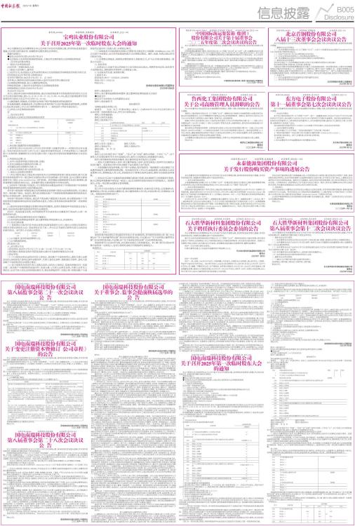 本公司董事会及全体董事保证本公告内容不存在任何虚假记载、误导性陈述或者重大遗漏,并对其内容的真实性、准确性和完整性承担法律责任。 重要内容提示: ●股东大会召开日期:2025年1月23日 ●本次股东大会采用的网络投票系统:上海证券交易所股东大会网络投票系统 一、召开会议的基本情况 (一)股东大会类型和届次 2025年第一次临时股东大会 (二)股东大会召集人:董事会 (三)投票方式:本次股东大会所采用的表决方式是现场投票和网络投票相结合的方式 (四)现场会议召开的日期、时间和地点 召开的日期时间:2025年1月23日 11 点 00分 召开地点:陕西省宝鸡市高新区高新大道88号宝钛宾馆七楼会议室 (五)网络投票的系统、起止日期和投票时间。 网络投票系统:上海证券交易所股东大会网络投票系统 网络投票起止时间:自2025年1月23日 至2025年1月23日 采用上海证券交易所网络投票系统,通过交易系统投票平台的投票时间为股东大会召开当日的交易时间段,即9:15-9:25,9:30-11:30,13:00-15:00;通过互联网投票平台的投票时间为股东大会召开当日的9:15-15:00。 (六)融资融券、转融通、约定购回业务账户和沪股通投资者的投票程序 涉及融资融券、转融通业务、约定购回业务相关账户以及沪股通投资者的投票,应按照《上海证券交易所上市公司自律监管指引第1号 一 规范运作》等有关规定执行。 (七)涉及公开征集股东投票权 否 二、会议审议事项 本次股东大会审议议案及投票股东类型 ■ 1、各议案已披露的时间和披露媒体 上述事项已经公司2024年12月16日召开的第八届董事会第十一次临时会议审议通过,相关内容详见2024年12月17日在上海证券交易所网站及《中国证券报》《上海证券报》《证券时报》披露的相关公告及后续公司在上海证券交易所网站披露的股东大会会议资料。 2、特别决议议案:无 3、对中小投资者单独计票的议案:议案2 4、涉及关联股东回避表决的议案:无 应回避表决的关联股东名称:无 5、涉及优先股股东参与表决的议案:无 三、股东大会投票注意事项 (一)本公司股东通过上海证券交易所股东大会网络投票系统行使表决权的,既可以登陆交易系统投票平台(通过指定交易的证券公司交易终端)进行投票,也可以登陆互联网投票平台(网址:vote.sseinfo.com)进行投票。首次登陆互联网投票平台进行投票的,投资者需要完成股东身份认证。具体操作请见互联网投票平台网站说明。 (二)持有多个股东账户的股东,可行使的表决权数量是其名下全部股东账户所持相同类别普通股和相同品种优先股的数量总和。 持有多个股东账户的股东通过本所网络投票系统参与股东大会网络投票的,可以通过其任一股东账户参加。投票后,视为其全部股东账户下的相同类别普通股和相同品种优先股均已分别投出同一意见的表决票。 持有多个股东账户的股东,通过多个股东账户重复进行表决的,其全部股东账户下的相同类别普通股和相同品种优先股的表决意见,分别以各类别和品种股票的第一次投票结果为准。 (三)股东所投选举票数超过其拥有的选举票数的,或者在差额选举中投票超过应选人数的,其对该项议案所投的选举票视为无效投票。 (四)同一表决权通过现场、本所网络投票平台或其他方式重复进行表决的,以第一次投票结果为准。 (五)股东对所有议案均表决完毕才能提交。 (六)采用累积投票制选举董事、独立董事和监事的投票方式,详见附件2 四、会议出席对象 (一)股权登记日收市后在中国证券登记结算有限责任公司上海分公司登记在册的公司股东有权出席股东大会(具体情况详见下表),并可以以书面形式委托代理人出席会议和参加表决。该代理人不必是公司股东。 ■ (二)公司董事、监事和高级管理人员。 (三)公司聘请的律师。 (四)其他人员 五、会议登记方法 1.登记时间:2025年1月17日上午 8:00一11:30、下午13:30一17:00 2.登记地址:陕西省宝鸡市高新区高新大道88号宝钛股份董事会办公室 3.登记手续: (1)个人股东出席会议的应持本人身份证、股东帐户卡或持股凭证;委托代理人出席会议的,应持委托人身份证原件或复印件、代理人身份证原件、授权委托书原件、委托人股东帐户卡或持股凭证办理登记事宜。 (2)法人股股东由法定代表人出席会议的,应持本人身份证、营业执照复印件(加盖公章)、股东帐户卡或持股凭证复印件(加盖公章);代理人出席会议的,代理人应持本人身份证、法定代表人依法出具的授权委托书、营业执照复印件(加盖公章)和股东帐户卡或持股凭证复印件(加盖公章)办理登记事宜。 (3)异地股东可采取将相关资料以扫描件形式发送至公司邮箱(dsb@baoti.com)的方式进行书面登记,也可采用信函或传真方式办理登记事宜。邮件、信函、传真以登记时间内收到为准。 (4)办理登记的股东,请提供必要的联系人及联系方式,并与公司电话联系确认(联系方式见后)。 六、其他事项 1、出席会议人员请于会议开始前半小时内到达会议地点,并携带身份证明、股东账号卡或持股凭证、授权委托书等原件,以便验证入场。 2、与会股东的交通、食宿费自理。 3、联系方式: 联系电话:0917一3382026、3382666 传真:0917-3382132 特此公告。 宝鸡钛业股份有限公司董事会 2025年1月8日 附件1:授权委托书 附件2:采用累积投票制选举董事、独立董事和监事的投票方式说明 ●报备文