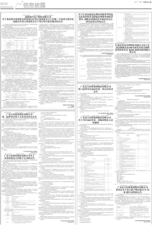 证券代码:002683 证券简称:广东宏大 公告编号:2025-002 广东宏大控股集团股份有限公司 第六届董事会2025年第一次会议决议公告 本公司及董事会全体成员保证信息披露内容的真实、准确和完整,没有虚假记载、误导性陈述或重大遗漏。 一、董事会会议召开情况 广东宏大控股集团股份有限公司(以下简称“公司”)第六届董事会2025年第一次会议于2025年1月7日以电子邮件方式向全体董事发出通知。 本次会议于2025年1月10日以通讯表决方式召开,会议应到董事8人,实到董事8人。会议由董事长郑炳旭先生主持。 本次董事会会议的召开符合《公司法》和《公司章程》的有关规定。 二、董事会会议审议情况 1、审议通过了《关于提请召开2025年第一次临时股东大会的议案》 内容详见公司于同日刊登在《中国证券报》《上海证券报》《证券日报》《证券时报》及巨潮资讯网(http://www.cninfo.com.cn)的相关公告。 表决情况:同意8票,反对0票,弃权0票。 三、备查文件 《广东宏大控股集团股份有限公司第六届董事会2025年第一次会议决议》 特此公告。 广东宏大控股集团股份有限公司董事会 2025年1月10日 证券代码:002683 证券简称:广东宏大 公告编号:2025-003 广东宏大控股集团股份有限公司 关于召开2025年第一次临时股东大会的通知 本公司及董事会全体成员保证信息披露内容的真实、准确和完整,没有虚假记载、误导性陈述或重大遗漏。 一、召开会议的基本情况 1、股东大会届次:广东宏大控股集团股份有限公司2025年第一次临时股东大会。 2、股东大会的召集人:公司第六届董事会,本次股东大会经公司第六届董事会2025年第一次会议决议召开。 3、本次股东大会会议召开符合有关法律、行政法规、部门规章、规范性文件和《公司章程》的规定。 4、会议召开时间: 现场会议召开时间为2025年1月27日下午15:30 网络投票时间:2025年1月27日。其中: (1)通过深圳证券交易所交易系统进行网络投票的具体时间为:2025年1月27日9:15-9:25,9:30-11:30和下午13:00-15:00。 (2)通过深圳证券交易所互联网投票的具体时间为:2025年1月27日9:15-15:00期间的任意时间。 5、会议召开方式:采取现场结合网络投票方式。公司股东只能选择现场投票、网络投票中的一种方式,如果同一表决权出现重复投票表决的,以第一次投票表决结果为准。 6、股权登记日:2025年1月22日。 7、出席对象: (1)截至2025年1月22日下午15:00交易结束后,在中国证券登记结算有限责任公司深圳分公司登记在册的公司全体股东,均有权以本通知公布的方式出席本次股东大会及参加表决;因故不能亲自出席现场会议的股东可书面委托代理人出席会议和参加表决,该股东代理人可不必是公司的股东。 (2)公司董事、监事、高级管理人员。 (3)公司聘请的律师等相关人员。 8、会议地点:广州市天河区兴民路222号C3天盈广场东塔56层会议室 二、会议审议事项 ■ 特别说明: 1、上述议案有关内容详见公司于2024年12月13日、2025年1月11日刊登在《证券时报》《中国证券报》《上海证券报》《证券日报》以及巨潮资讯网(http://www.cninfo.com.cn)上相关公告。 2、上述议案将对中小投资者(指除公司董事、监事、高级管理人员以及单独或者合计持有公司5%以上股份的股东以外的其他股东)的表决进行单独计票及公开披露。 3、本次会议所有议案为特别决议事项,须经出席股东大会股东所持有的有效表决权三分之二以上通过,其中提案3需逐项表决。 三、会议登记方法 1、登记时间:2025年1月24日上午9:00-11:30,下午2:00-5:00; 2、登记地点:广州市天河区兴民路222号C3天盈广场东塔56层广东宏大控股集团股份有限公司证券保密部; 3、登记办法 (1)法人股东登记。法人股东的法定代表人须持股东账户卡、加盖公司公章的营业执照复印件、法人代表证明书和本人身份证办理登记手续;委托代理人出席的,还须持法人授权委托书和出席人身份证; (2)自然人股东登记。自然人股东须持本人身份证、股东账户卡等办理登记手续;受委托出席的股东代理人还须持有出席人身份证和授权委托书; (3)股东可以将上述资料用传真或信函方式进行登记(须在登记时间2025年1月24日前送达公司证券保密部)。 4、联系方式 联 系 人:王紫沁、黄佳顺 联系电话:020-38031687 传 真:020-38031951 电子邮箱:hdbp@hdbp.com 联系地址:广州市天河区兴民路222号C3天盈广场东塔56层 邮 编:510623 5、会议费用:与会股东交通、食宿费自理。 四、参加网络投票的具体操作流程 在本次股东大会上,股东可以通过深交所交易系统和互联网投票系统(地址为http://wltp.cninfo.com.cn)参加投票,网络投票的具体操作流程见附件一。 五、备查文件 《广东宏大控股集团股份有限公司第六届董事会2025年第一次会议决议》 特此公告。 广东宏大控股集团股份有限公司董事会 2025年1月10日 附件一: 参加网络投票的具体操作流程 一、 网络投票的程序 1、普通股的投票代码与投票简称:投票代码为“362683”,投票简称为“宏大投票”。 2、填报表决意见:同意、反对、弃权。 3、股东对总议案进行投票,视为对除累积投票提案外的其他所有提案表达相同意见。 股东对总议案与具体提案重复投票时,以第一次有效投票为准。如股东先对具体提案投票表决,再对总议案投票表决,则以已投票表决的具体提案的表决意见为准,其他未表决的提案以总议案的表决意