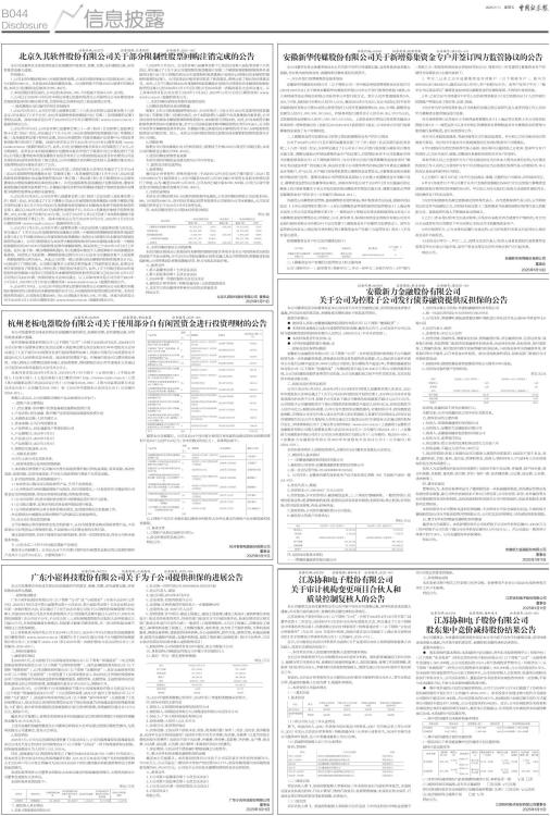 证券代码:605258 证券简称:协和电子 公告编号:2025-001 江苏协和电子股份有限公司 关于审计机构变更项目合伙人和 质量控制复核人的公告 本公司董事会及全体董事保证本公告内容不存在任何虚假记载、误导性陈述或者重大遗漏,并对其内容的真实性、准确性和完整性承担法律责任。 江苏协和电子股份有限公司(以下简称“公司”)分别于2024年4月14日召开第三届董事会第十二次会议、2024年5月13日召开2023年年度股东大会,审议通过了《关于续聘会计师事务所的议案》,同意续聘立信会计师事务所(特殊普通合伙)(以下简称“立信会计师事务所”)为公司 2024 年度审计机构,具体内容详见公司披露于上海证券交易所网站的《关于续聘会计师事务所的公告》(公告编号:2024-014)。 近日,公司收到立信会计师事务所出具的《关于变更项目合伙人和质量控制复核人告知函》,现将有关情况告知如下: 一、本次项目合伙人及质量控制复核人变更的基本情况 立信会计师事务所作为公司续聘的2024年度审计机构,原指派梁谦海担任项目合伙人、杨媛为签字注册会计师、黄瑾担任质量控制复核人,现因梁谦海、黄瑾工作安排调整,改派黄飞担任项目合伙人,李顺利担任质量控制复核人,继续完成公司2024年度审计报告相关工作。 变更后,立信会计师事务所为公司提供2024年度审计服务的项目合伙人、签字注册会计师、质量控制复核人分别为黄飞、杨媛和李顺利。 二、本次变更人员基本情况 (一)基本信息 1、基本信息 ■ (1)项目合伙人近三年从业情况 黄飞,权益合伙人,2002 年获得中国注册会计师资质,2007 年开始从事上市公司审计,2023 年加入立信会计师事务所(特殊普通合伙)从事审计业务至今,2024年开始为本公司提供审计服务,近三年签署或复核上市公司2家。 (2)质量控制复核人近三年从业情况 姓名:李顺利 ■ (二)诚信记录 项目合伙人黄飞、质量控制复核人李顺利近三年未因执业行为受到刑事处罚,未受到证监会及其派出机构、行业主管部门等的行政处罚、监督管理措施,未受到证券交易所、行业协会等自律组织的自律监管措施、纪律处分。 (三)独立性 项目合伙人黄飞、质量控制复核人李顺利不存在违反《中国注册会计师职业道德守则》对独立性要求的情形。 三、其他情况说明 本次变更过程中相关工作安排已有序交接,变更事项不会对公司2024年度财务报告审计工作产生影响。 特此公告。 江苏协和电子股份有限公司 董事会 2025年1月11日 证券代码:605258 证券简称:协和电子 公告编号:2025-002 江苏协和电子股份有限公司 股东集中竞价减持股份结果公告 本公司董事会、全体董事及相关股东保证本公告内容不存在任何虚假记载、误导性陈述或者重大遗漏,并对其内容的真实性、准确性和完整性承担法律责任。 重要内容提示: ● 股东持股的基本情况:本次减持计划实施前,常州东禾投资管理中心(有限合伙)(以下简称“东禾投资”)持有江苏协和电子股份有限公司(以下简称“公司”)无限售条件流通股1,360,000股,占公司总股份的1.55%;常州协诚投资管理中心(有限合伙)(以下简称“协诚投资”)持有公司无限售条件流通股1,360,000股,占公司总股份的1.55%。东禾投资与协诚投资均为公司员工持股平台,公司实际控制人之张南国、张建荣分别担任其执行事务合伙人。公司实际控制人、董监高在东禾投资和协诚投资中持有一定份额,不参与本次减持计划,不参与本次股份减持收益分配。 ● 集中竞价减持计划的实施结果情况:公司于2024年12月16日披露了《协和电子股东减持股份计划公告》(公告编号:2024-038),东禾投资计划通过集中竞价方式减持公司股份不超过306,000股,占公司总股本的0.3477%,协诚投资计划通过集中竞价方式减持公司股份不超过477,000股,占公司总股本的0.5420%。近日,公司分别收到东禾投资和协诚投资出具的《减持结果告知函》,截至本公告披露日,东禾投资与协诚投资本次减持数量已达成,本次减持计划实施完毕。 一、集中竞价减持主体减持前基本情况 ■ 二、集中竞价减持计划的实施结果 (一)股东因以下事项披露集中竞价减持计划实施结果: 减持计划实施完毕 ■ (二)本次实际减持情况与此前披露的减持计划、承诺是否一致 √是 □否 (三)减持时间区间届满,是否未实施减持 □未实施 √已实施 (四)实际减持是否未达到减持计划最低减持数量(比例) □未达到 √已达到 (五)是否提前终止减持计划 □是 √否 特此公告。 江苏协和电子股份有限公司董事会 2025年1月11日