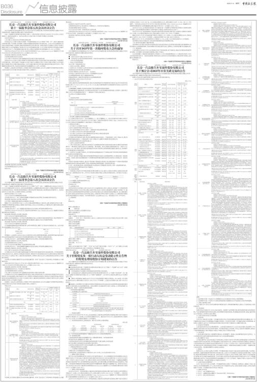证券代码:600742 证券简称:一汽富维 公告编号:2025-004 长春一汽富维汽车零部件股份有限公司 第十一届监事会第五次会议决议公告 本公司监事会及全体监事保证本公告内容不存在任何虚假记载、误导性陈述或者重大遗漏,并对其内容的真实性、准确性和完整性承担个别及连带责任。 长春一汽富维汽车零部件股份有限公司第十一届监事会第五次会议于2025年1月13日召开,应到会监事3人,实际到会监事3人。此次会议符合《公司法》和《公司章程》的规定,合法有效。 会议审议通过了: 1.关于预计公司2025年日常关联交易的议案 监事会认为:公司拟与关联方中国第一汽车集团有限公司(以下简称“中国一汽”)及其下属企业发生原材料采购、产品销售、综合服务、金融存贷款服务等类型的日常关联交易。以及公司与合营联营公司拟发生原材料采购、产品销售、接受劳务等类型的日常关联交易。该等交易的产生是基于正常生产经营之需要,有助于公司市场的稳定与拓展,符合公司和全体股东利益。公司与关联方发生的日常关联交易是在市场化运作方式下,严格遵循相关规定进行的,交易定价政策和定价依据遵照公正、公平、公开原则。 内容详见公司2025年1月14日在上海证券交易所网站(http://www.sse.com.cn)披露的《关于预计公司2025年日常关联交易的公告》,公告编号:2025-005。 表决结果:同意3票,反对0票,弃权0票。 本议案尚需提交股东大会审议 2.关于预计公司2025年日常与富奥股份及其关联方关联交易的议案 监事会认为:公司拟与关联方富奥汽车零部件股份有限公司及其关联方发生材料采购、产品销售的日常关联交易。该等交易的产生是基于公司及下属子公司维持正常生产经营之需要,有助于公司市场的稳定与拓展,符合公司和全体股东利益。公司与关联方发生的日常关联交易是在市场化运作方式下,严格遵循相关规定进行的,交易定价政策和定价依据遵照公正、公平、公开原则。 现根据《上海证券交易所股票上市规则》等有关规定的要求,对公司与富奥汽车零部件股份有限公司及其关联方2025年度日常关联交易进行预计,具体如下: 单位:万元 ■ ■ 表决结果:同意3票,反对0票,弃权0票。 本议案尚需提交股东大会审议。 特此公告。 长春一汽富维汽车零部件股份有限公司监事会 2025年1月14日 证券代码:600742 证券简称:一汽富维 公告编号:2025-003 长春一汽富维汽车零部件股份有限公司 第十一届董事会第八次会议决议公告 本公司董事会及全体董事保证本公告内容不存在任何虚假记载、误导性陈述或者重大遗漏,并对其内容的真实性、准确性和完整性承担个别及连带责任。 长春一汽富维汽车零部件股份有限公司(以下简称“公司”)第十一届董事会第八次会议于2025年1月13日以现场表决的方式召开。应参加表决的董事8人,副董事长杨文昭先生因工作原因未能亲自以现场方式参加本次会议,书面委托董事孙静波女士参加会议并行使表决权,实际参加表决的董事8人。此次会议符合《公司法》和《公司章程》的规定,合法有效。 逐项审议并通过了以下议案: 1.关于公司2025年度绩效指标的议案 本议案已经公司十一届二次董事会薪酬与考核委员会会议审核,并同意提交董事会审议。 表决结果:同意8票,反对0票,弃权0票。 2.关于修订《董事会提名委员会议事规则》的议案 根据《中华人民共和国公司法》《上市公司独立董事管理办法》等法律、法规、规范性文件及《长春一汽富维汽车零部件股份有限公司章程》的有关规定,结合公司实际情况,公司董事会对《董事会提名委员会议事规则》进行修订。 本议案已经公司十一届三次董事会提名委员会会议审核,并同意提交董事会审议。 内容详见公司2025年1月14日在上海证券交易所网站(http://www.sse.com.cn)披露的《董事会提名委员会议事规则》。 表决结果:同意8票,反对0票,弃权0票。 3.关于公司2025年度财务预算的议案 围绕公司五年战略规划、三年事业计划的战略总目标,以及股东方提出的经营目标。综合考虑客户产量、材料价格波动、客户降价及降本增效措施等前提条件,编制公司2025年度财务预算。 表决结果:同意8票,反对0票,弃权0票。 4.关于公司2025年度投资计划的议案 公司依据发展规划和内外部市场分析,并结合经营实际,编制了公司2025年度投资计划。2025年投资计划总额预计为84,567万元。 ■ 特别提示:上述投资计划为公司2025年度经营计划的内部管理控制指标,能否按期实施完成还受汽车行业的发展趋势和市场状况变化等多种因素的影响,存在不确定性,请投资者注意。 本议案已经公司十一届四次董事会战略委员会会议审核,并同意提交董事会审议。 表决结果:同意8票,反对0票,弃权0票。 本议案尚需提交股东大会审议。 5.关于公司2025年度实物资产处置预算清单的议案 本议案已经公司十一届四次董事会战略委员会会议审核,并同意提交董事会审议。 表决结果:同意8票,反对0票,弃权0票。 6.关于预计公司2025年日常关联交易的议案 公司预计2025年日常关联交易情况是基于正常的市场交易条件及有关协议制定的,符合商业惯例;关联交易定价公允,未损害公司利益及全体股东,特别是中小股东的利益;相关交易的内容及决策程序符合《公司法》《证券法》和《上海证券交易所股票上市规则》等有关法律、法规及规范性文件和《公