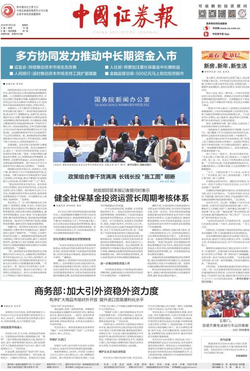 ■ 证监会:持续推动资本市场生态改善 ■ 人社部:将更加注重社保基金中长期收益