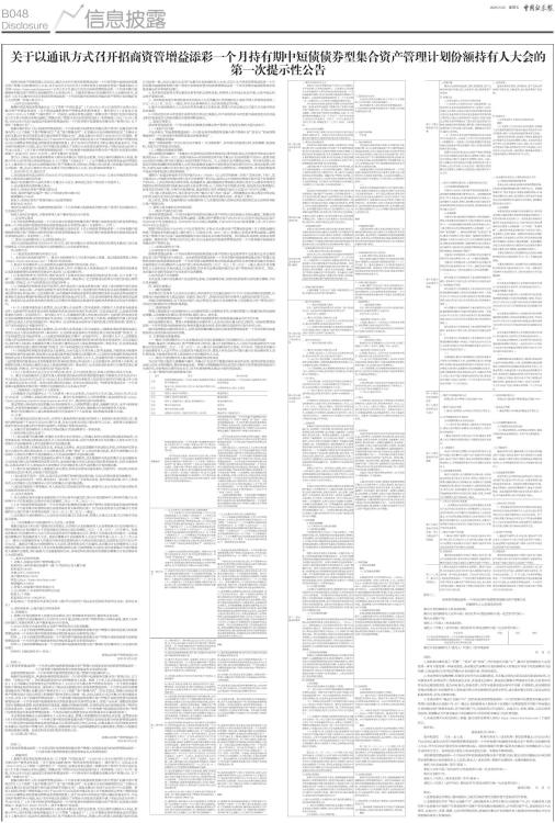 关于以通讯方式召开招商资管增益添彩一个月持有期中短债债券型集合资产管理计划份额持有人大会的第一次提示性公告