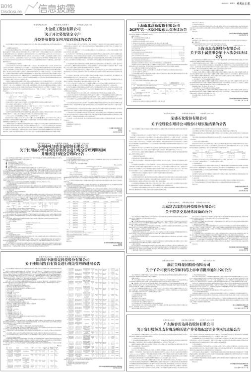 证券代码:600604900902 证券简称:市北高新市北B股 公告编号:2025-005 上海市北高新股份有限公司 2025年第一次临时股东大会决议公告 本公司董事会及全体董事保证本公告内容不存在任何虚假记载、误导性陈述或者重大遗漏,并对其内容的真实性、准确性和完整性承担法律责任。 重要内容提示: ● 本次会议是否有否决议案:无 一、会议召开和出席情况 (一)股东大会召开的时间:2025年2月20日 (二)股东大会召开的地点:上海市静安区江场三路238号一楼会议室 (三)出席会议的普通股股东和恢复表决权的优先股股东及其持有股份情况: ■ (四)表决方式是否符合《公司法》及《公司章程》的规定,大会主持情况等。 本次股东大会由公司董事会召集,公司董事长孙中峰先生主持。本次会议采用现场投票和网络投票相结合的表决方式,会议的召集、召开程序及表决方式均符合《公司法》和《公司章程》的规定。 (五)公司董事、监事和董事会秘书的出席情况 1、公司在任董事7人,出席5人,董事卢醇先生、独立董事何万篷先生因公务未能出席此次会议; 2、公司在任监事3人,出席3人; 3、公司总经理马慧民先生,财务总监李炜勇先生出席了本次会议,副总经理、董事会秘书胡申先生,副总经理成佳女士因公务未能出席此次会议。 二、议案审议情况 (一)累积投票议案表决情况 1、关于选举公司第十届董事会独立董事的议案 ■ (二)涉及重大事项,5%以下股东的表决情况 ■ (三)关于议案表决的有关情况说明 无 三、律师见证情况 1、本次股东大会见证的律师事务所:国浩律师(上海)事务所 律师:刘云飞、陶立宇 2、律师见证结论意见: 本次股东大会的召集、召开程序符合法律、法规、规范性文件及公司章程的相关规定;出席本次股东大会会议的人员及本次股东大会的召集人具有合法有效的资格;本次股东大会的表决程序及表决结果真实、合法、有效。 特此公告。 上海市北高新股份有限公司董事会 2025年2月21日 ● 上网公告文件 国浩律师(上海)事务所关于上海市北高新股份有限公司2025年第一次临时股东大会的法律意见书 ● 报备文件 上海市北高新股份有限公司2025年第一次临时股东大会决议 证券代码:600604 900902 证券简称:市北高新 市北B股 公告编码:临2025-006 上海市北高新股份有限公司 关于第十届董事会第十八次会议决议公告 本公司董事会及全体董事保证本公告内容不存在任何虚假记载、误导性陈述或者重大遗漏,并对其内容的真实性、准确性和完整性承担法律责任。 上海市北高新股份有限公司(以下简称“公司”)第十届董事会第十八次会议于2025年2月20日在公司会议室召开。本次会议采取现场方式进行,会议应到董事7名,实到董事7名,公司监事及高级管理人员列席了会议。会议的召集、召开及表决程序符合《中华人民共和国公司法》、《公司章程》和《公司董事会议事规则》的规定。本次会议由董事长孙中峰先生主持,会议审议并通过如下议案: 一、审议通过了《关于补选薪酬与考核委员会委员的议案》 为完善公司治理,根据《公司董事会薪酬与考核委员会议事规则》规定,经公司第十届董事会推荐,选举公司独立董事任新建先生为公司第十届董事会薪酬与考核委员会委员,与孙中峰先生、黄钟伟先生组成公司第十届董事会薪酬与考核委员会,其中任新建先生为主任委员,任期与公司第十届董事会一致。 表决结果:同意7 票,反对0 票,弃权0 票。 二、审议通过了《关于补选战略委员会委员的议案》 为完善公司治理,根据《公司董事会战略委员会议事规则》规定,经公司第十届董事会推荐,选举公司独立董事任新建先生为公司第十届董事会战略委员会委员,与孙中峰先生、毛玲玲女士、卢醇先生、马慧民先生组成公司第十届董事会战略委员会,任期与公司第十届董事会一致。 表决结果:同意7 票,反对0 票,弃权0 票。 三、审议通过了《关于补选提名委员会委员的议案》 为完善公司治理,根据《公司董事会提名委员会议事规则》规定,经公司第十届董事会推荐,选举公司独立董事任新建先生为公司第十届董事会提名委员会委员,与毛玲玲女士、卢醇先生组成公司第十届董事会提名委员会,任期与公司第十届董事会一致。 表决结果:同意7 票,反对0 票,弃权0 票。 特此公告。 上海市北高新股份有限公司董事会 二〇二五年二月二十一日