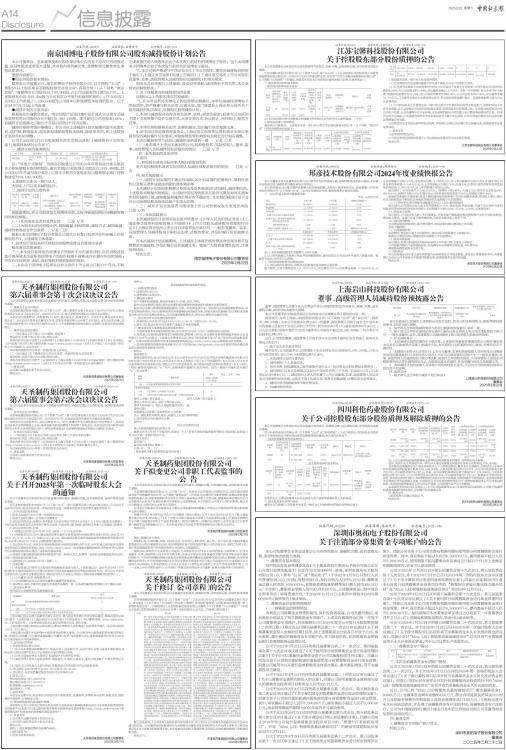 本公司及董事会全体成员保证信息披露内容的真实、准确和完整,没有虚假记载、误导性陈述或重大遗漏。 四川科伦药业股份有限公司(以下简称“公司”或“科伦药业”)于近日收到公司控股股东刘革新先生关于其持有的公司部分股份质押及解除质押的通知,相关情况具体如下: 一、股东股份解除质押的基本情况 ■ 二、股东股份质押的基本情况 ■ 刘革新先生上述股份质押不存在负担重大资产重组等业绩补偿义务的情况。 三、股东股份累计质押的情况 截至本公告披露日,刘革新先生及其一致行动人所直接持有的股份质押情况如下: ■ 注:上述已质押股份限售数量和未质押股份限售数量系因董事、高管锁定股而限售。 此外,刘思川先生单独或与其一致行动人通过私募基金间接合计持有公司股票22,650,600股。 本次股份质押融资系用于满足刘革新先生个人的资金需求。截至本公告披露日,刘革新先生未来半年内到期的质押股份累计数量为40,564,000股,占其所持股份比例为10.70%,占公司目前总股本比例为2.53%,对应融资余额为4.63亿元;未来一年内到期的质押股份累计数量为87,274,000股,占其所持股份比例为23.02%,占公司目前总股本比例为5.45%,对应融资余额为9.43亿元。刘革新先生资信状况良好,具有相应的偿付能力,其质押的股份目前不存在平仓风险,质押风险在可控范围内,本次股份质押不会导致公司实际控制人变更。刘革新先生不存在非经营性资金占用、违规担保等侵害上市公司利益的情形,本次股份质押事项对上市公司生产经营、公司治理不会产生不利影响。 未来股份变动如达到《证券法》《上市公司收购管理办法》等规定的相关情形的,公司将严格遵照权益变动披露的相关规定,及时履行信息披露义务。 四、备查文件 1.股票质押式回购交易协议书。 特此公告。 四川科伦药业股份有限公司董事会 2025年2月22日