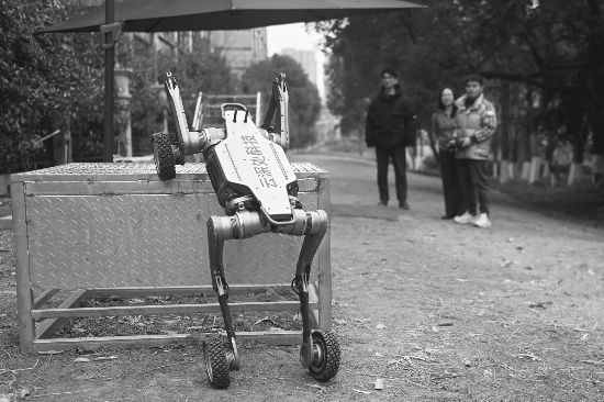 杭州云深处科技的工作人员在动态展示“绝影”系列机器人。新华社图文