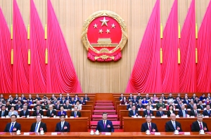 3月11日下午,第十四届全国人民代表大会第三次会议在北京人民大会堂闭幕。党和国家领导人习近平、李强、王沪宁、蔡奇、丁薛祥、李希、韩正等在主席台就座。 新华社记者 李学仁 摄