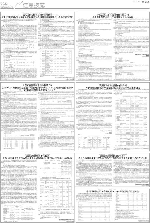 本公司董事会及全体董事保证本公告内容不存在任何虚假记载、误导性陈述或者重大遗漏,并对其内容的真实性、准确性和完整性承担法律责任。 2025年2月,中国国际航空股份有限公司(以下简称“本公司”)及所属子公司(以下简称“本集团”)合并旅客周转量(按收入客公里计)同比下降。客运运力投入(按可用座位公里计)同比下降2.4%,旅客周转量同比下降3.0%。其中,国内客运运力投入同比下降8.2%,旅客周转量同比下降7.1%;国际客运运力投入同比上升17.1%,旅客周转量同比上升12.1%;地区客运运力投入同比下降8.2%,旅客周转量同比下降12.0%。平均客座率82.1%,同比下降0.5个百分点。其中,国内航线同比上升1.0个百分点,国际航线同比下降3.5个百分点,地区航线同比下降3.1个百分点。 货运方面,货运运力投入(按可用货运吨公里计)同比上升0.9%,货邮周转量(按收入货运吨公里计)同比上升2.9%。货运载运率为29.8%,同比上升0.6个百分点。 2025年2月,本集团未引进飞机。截至2025年2月底,本集团合计运营934架飞机,其中自有飞机409架,融资租赁229架,经营租赁296架。 2025年2月主要运营数据如下表: ■ ■ ■ 注:1、运输能力及运输同比、环比单位为百分比,载运率同比、环比单位为百分点 2、可用吨公里指飞行公里乘以可用运载吨位数量 3、可用座位公里指飞行公里乘以可出售座位数量 4、可用货运吨公里指飞行公里乘以可载货物及邮件吨位数量 5、收入吨公里指飞行公里乘以收费运载(乘客及货物)吨位量 6、收入客公里指飞行公里乘以收费旅客人数 7、收入货运吨公里指飞行公里乘以收费运载货物及邮件吨位 8、客座利用率指以收入客公里除以可用座位公里所得的百分比 9、货物及邮件载运率指以收入货运吨公里除以可用货运吨公里所得的百分比 10、综合载运率指以收入吨公里除以可用吨公里所得的百分比 以上主要运营数据来自本集团内部统计,可能与相关期间定期报告披露的数据有差异。投资者应注意不恰当信赖或使用以上信息可能造成投资风险。 特此公告。 中国国际航空股份有限公司董事会 中国北京,二〇二五年三月十四日