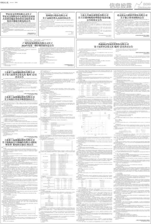 证券代码:002936 证券简称:郑州银行 公告编号:2025-014 郑州银行股份有限公司 关于高级管理人员辞任的公告 郑州银行股份有限公司(以下简称“本行”)及董事会全体成员保证公告内容的真实、准确、完整,没有虚假记载、误导性陈述或重大遗漏。 近日,本行收到郭志彬先生的辞任报告,因身体原因辞去本行副行长职务。辞任后,郭志彬先生将不再担任本行及本行控股子公司任何职务。 截至本公告日,郭志彬先生持有本行102,914股A股股份。辞任后,郭志彬先生将继续遵守法律法规有关所持本行股份及其变动的规定。郭志彬先生确认与本行董事会无不同意见,亦无其他事项需要通知本行股东。 特此公告。 郑州银行股份有限公司 董事会 2025年3月27日
