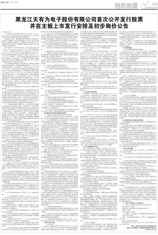 黑龙江天有为电子股份有限公司首次公开发行股票
