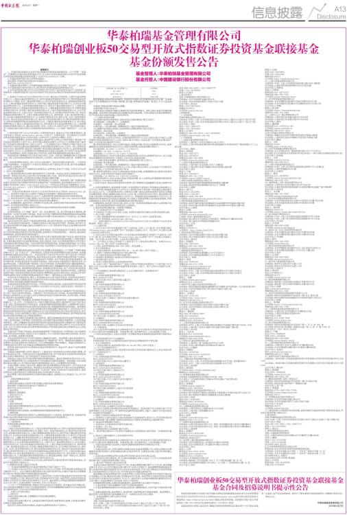 华泰柏瑞创业板50交易型开放式指数证券投资基金联接基金基金合同全文和招募说明书全文于2025年4月7日在本公司网站[www.huatai-pb.com]和中国证监会基金电子披露网站(http://eid.csrc.gov.cn/fund)披露,供投资者查阅。如有疑问可拨打本公司客服电话(400-888-0001[免长途费用]或021-38784638)咨询。 本基金管理人承诺以诚实信用、勤勉尽责的原则管理和运用基金资产,但不保证本基金一定盈利,也不保证最低收益。请充分了解本基金的风险收益特征,审慎做出投资决定。 特此公告。 华泰柏瑞基金管理有限公司 2025年4月7日