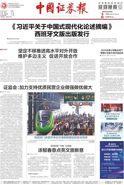 ● 本报记者 昝秀丽 证监会4月3日消息,证监会党委书记、主席吴清近日表示,证监会将以深化资本市场投融资综合改革为牵引,加快推进新一轮资本市场改革开放。尊重市场规律,切实提升资本市场的包容性、适应性,持续增强规则的透明度、可预期性,进一步完善全链条全生命周期的多层次市场服务体系,加力支持优质民营企业做强做优做大。 为深入贯彻落实党的二十届三中全会、中央经济工作会议和民营企业座谈会精神,进一步全面深化资本市场改革,更好服务科技创新和民营经济高质量发展,吴清近日在北京召开专题座谈会,与集成电路、新能源汽车、智能制造、新材料、商业航天、网络经济等不同领域的民营科技企业代表深入交流,充分听取意见建议。证监会党委委员、副主席李超参加座谈。 座谈中,大家一致认为,党中央高度重视和关心民营经济发展,习近平总书记在民营企业座谈会上的重要讲话,进一步统一了各方思想,有力提振了民营企业发展信心。大家表示,随着新“国九条”及“科创板八条”、“并购六条”、资本市场做好金融“五篇大文章”等“1+N”政策体系持续落地见效,投资和融资更加协调的市场生态正在加快形成,各方预期明显改善。资本市场作为支持科技创新和促进民营经济发展壮大的重要平台,在推动新质生产力发展、服务经济回升向好方面发挥着日益重要的作用。同时,与会代表围绕深化资本市场投融资综合改革,进一步推动资本市场改革发展提出了具体建议,包括改革优化股票发行上市、再融资和并购重组等制度,进一步增强制度包容性、适应性,提升投融资便利度和效率;进一步完善科技企业发现培育、识别筛选和IPO支持机制,增强对未盈利科技型企业发行上市的包容度,完善信息披露相关制度规则;支持境外已上市科技企业回归,优化上市公司结构,丰富优质投资标的;加大推动中长期资金入市力度,培育壮大长期投资力量等。 吴清表示,民营经济是国民经济的重要组成部分,是推动科技创新的重要力量。大力支持民营经济发展,既是资本市场服务实体经济的内在要求,也是加快培育高质量上市公司和促进资本市场高质量发展的重要着力点。证监会将持续深入学习贯彻习近平总书记关于支持民营经济发展和科技创新的重要论述精神,坚持“两个毫不动摇”,以深化资本市场投融资综合改革为牵引,加快推进新一轮资本市场改革开放。尊重市场规律,切实提升资本市场的包容性、适应性,持续增强规则的透明度、可预期性,进一步完善全链条全生命周期的多层次市场服务体系,加力支持优质民营企业做强做优做大。民营科技企业作为民营经济和新质生产力领域的优秀代表,希望大家坚定信心,保持爱拼才会赢的精气神,以实际行动发挥好示范带头作用,积极利用资本市场转型升级、做优做强,更好回报投资者,为推动经济高质量发展和中国式现代化积极贡献力量。