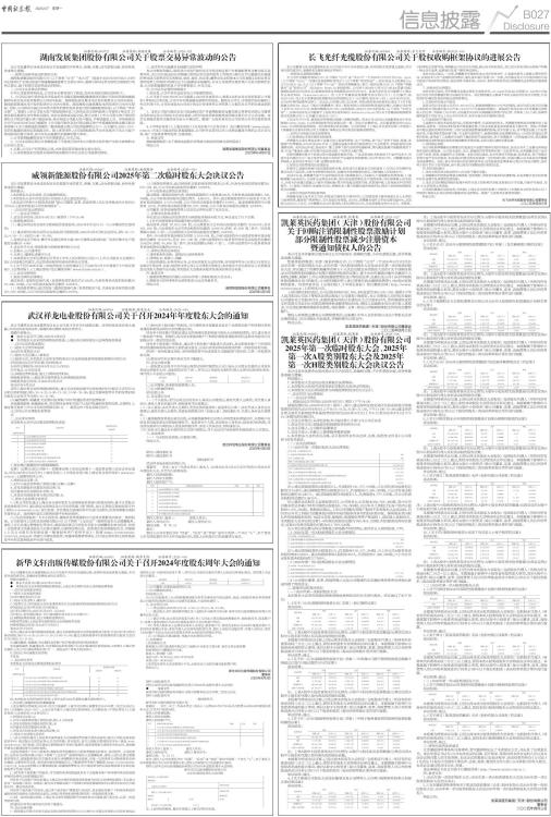 本公司董事会及全体董事保证本公告内容不存在任何虚假记载、误导性陈述或者重大遗漏,并对其内容的真实性、准确性和完整性承担法律责任。 重要内容提示: ● 股东大会召开日期:2025年5月20日 ● 本次股东大会采用的网络投票系统:上海证券交易所股东大会网络投票系统 一、召开会议的基本情况 (一)股东大会类型和届次 2024年度股东周年大会 (二)股东大会召集人:董事会 (三)投票方式:本次股东大会所采用的表决方式是现场投票和网络投票相结合的方式 (四)现场会议召开的日期、时间和地点 召开的日期时间:2025年5月20日 9点30分 召开地点:新华国际酒店(四川省成都市青羊区古中市街8号) (五)网络投票的系统、起止日期和投票时间。 网络投票系统:上海证券交易所股东大会网络投票系统 网络投票起止时间:自2025年5月20日 至2025年5月20日 采用上海证券交易所网络投票系统,通过交易系统投票平台的投票时间为股东大会召开当日的交易时间段,即9:15-9:25,9:30-11:30,13:00-15:00;通过互联网投票平台的投票时间为股东大会召开当日的9:15-15:00。 (六)融资融券、转融通、约定购回业务账户和沪股通投资者的投票程序 涉及融资融券、转融通业务、约定购回业务相关账户以及沪股通投资者的投票,应按照《上海证券交易所上市公司自律监管指引第1号 一 规范运作》等有关规定执行。 (七)涉及公开征集股东投票权 不涉及 二、会议审议事项 本次股东大会审议议案及投票股东类型 ■ 注:本次股东大会听取报告事项:《新华文轩2024年度独立董事述职报告》。 1、各议案已披露的时间和披露媒体 上述议案的详情请见2025年3月27日披露的《新华文轩第五届董事会2025年第二次会议决议公告》(公告编号:2025-003),上述公告刊载于上海证券交易所网站、公司网站及《中国证券报》《上海证券报》《证券时报》《证券日报》。 2、特别决议议案:无 3、对中小投资者单独计票的议案:第3、4、5项议案 4、涉及关联股东回避表决的议案:无 应回避表决的关联股东名称:无 5、涉及优先股股东参与表决的议案:无 三、股东大会投票注意事项 (一)本公司股东通过上海证券交易所股东大会网络投票系统行使表决权的,既可以登陆交易系统投票平台(通过指定交易的证券公司交易终端)进行投票,也可以登陆互联网投票平台(网址:vote.sseinfo.com)进行投票。首次登陆互联网投票平台进行投票的,投资者需要完成股东身份认证。具体操作请见互联网投票平台网站说明。 为更好的服务广大中小投资者,确保有投票意愿的中小投资者能够及时参会、及时投票。公司拟使用上证所信息网络有限公司(以下简称“上证信息”)提供的股东大会提醒服务,委托上证信息通过智能短信等形式,根据股权登记日的股东名册主动提醒股东参会投票,向每一位投资者主动推送股东会参会邀请、议案情况等信息。投资者在收到智能短信后,可根据使用手册(下载链接:https://vote.sseinfo.com/i/yjt_help.pdf)的提示步骤直接投票,如遇拥堵等情况,仍可通过原有的交易系统投票平台和互联网投票平台进行投票。 (二)持有多个股东账户的股东,可行使的表决权数量是其名下全部股东账户所持相同类别普通股和相同品种优先股的数量总和。 持有多个股东账户的股东通过上海证券交易所网络投票系统参与股东大会网络投票的,可以通过其任一股东账户参加。投票后,视为其全部股东账户下的相同类别普通股和相同品种优先股均已分别投出同一意见的表决票。 持有多个股东账户的股东,通过多个股东账户重复进行表决的,其全部股东账户下的相同类别普通股和相同品种优先股的表决意见,分别以各类别和品种股票的第一次投票结果为准。 (三)同一表决权通过现场、上海证券交易所网络投票平台或其他方式重复进行表决的,以第一次投票结果为准。 (四)股东对所有议案均表决完毕才能提交。 四、会议出席对象 (一)股权登记日收市后在中国证券登记结算有限责任公司上海分公司登记在册的公司股东有权出席股东大会(具体情况详见下表),并可以以书面形式委托代理人出席会议和参加表决。该代理人不必是公司股东。 ■ (二)公司董事、监事和高级管理人员。 (三)公司聘请的律师。 (四)其他人员。 (五)公司H股股东(公司将根据香港联交所有关要求另行发出通告、通函,H股股东参会事项请参见公司发布的H股相关股东大会通告及通函,不适用本通知)。 五、会议登记方法 (一)登记时间:2025年5月19日 9:30-11:30,13:30-17:00。 (二)登记地点:四川省成都市锦江区三色路238号新华之星A座 新华文轩出版传媒股份有限公司董事会办公室。 (三)登记手续:法人股东的股东代表(理)人持法人单位营业执照复印件、授权委托书、股东账户卡、出席人身份证和公司2024年度股东周年大会回执进行登记。 (四)自然人股东本人出席会议持本人身份证、股东账户卡、持股凭证和公司2024年度股东周年大会回执办理登记手续;委托代理人必须持有授权委托书、委托人身份证或复印件、代理人身份证、委托人股东账户卡和公司2024年度股东周年大会回执办理登记手续。 (五)公司股东可通过邮寄、传真方式办理登记手续。 六、其他事项 1.会议联系方式 联系地点:四川省成都市锦江区三色路238号新华之星A座 新华文轩出版传媒 股份有限公司董事会办公室。 联系人:李泽源 马