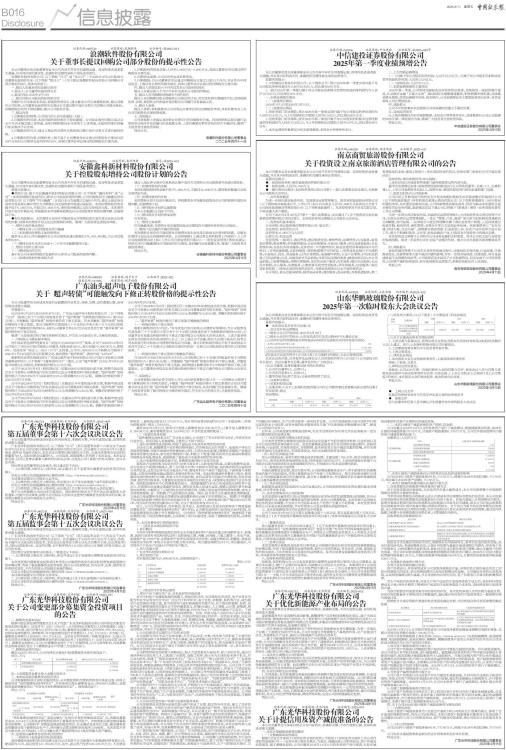 证券代码:002741 证券简称:光华科技 公告编号:2025-009 广东光华科技股份有限公司 第五届董事会第十六次会议决议公告 本公司及董事会全体成员保证公告内容真实、准确和完整,不存在虚假记载、误导性陈述或重大遗漏。 广东光华科技股份有限公司(以下简称“公司”)第五届董事会第十六次会议于2025年4月10日在公司会议室以现场和通讯相结合的方式召开,会议通知于2025年4月3日通过电话、邮件及书面形式发出,本次会议由董事长陈汉昭先生主持。出席本次董事会会议的应到董事为9人,实际出席会议董事9人。公司监事、高级管理人员列席了本次会议。本次会议的召集、召开以及参会董事人数均符合相关法律、法规及公司《章程》的有关规定,会议合法有效。 经出席会议的董事审议及表决,审议通过如下决议: 一、以9票同意、0票反对、0票弃权,审议通过《关于变更部分募集资金投资项目的议案》。 详见公司指定信息披露网站巨潮资讯网(http://www.cninfo.com.cn)。 本议案尚需提交公司股东大会审议。 二、以9票同意、0票反对、0票弃权,审议通过《关于优化新能源产业布局的议案》。 详见公司指定信息披露网站巨潮资讯网(http://www.cninfo.com.cn)。 三、以9票同意、0票反对、0票弃权,审议通过《关于暂不召开股东大会的议案》。 鉴于公司将披露公司2024年年度报告,届时将同时发出关于召开2024年度股东大会的通知,为提升会议效率,拟暂不召开股东大会审议变更部分募集资金投资项目的议案,并将该议案提交2024年度股东大会审议。 特此公告。 广东光华科技股份有限公司董事会 2025年4月11日 证券代码:002741 证券简称:光华科技 公告编号:2025-010 广东光华科技股份有限公司 第五届监事会第十五次会议决议公告 本公司及监事会全体成员保证公告内容真实、准确和完整,不存在虚假记载、误导性陈述或重大遗漏。 广东光华科技股份有限公司(以下简称“公司”)第五届监事会第十五次会议于2025年4月10日在公司会议室以现场方式召开。会议通知已于2025年4月3日以专人送达、传真、电子邮件方式送达给全体监事,本次会议由监事会主席王珏先生召集并主持,应出席监事3名,实际出席监事3名。会议的召集、召开程序符合《公司法》和公司《章程》的有关规定,会议合法有效。 经出席会议的监事审议和表决,一致通过以下决议: 一、以3票同意、0票反对、0票弃权,审议并通过《关于变更部分募集资金投资项目的议案》。 本次变更部分募集资金投资项目事项是公司根据市场变化和实际经营发展需要做出的审慎决策,有利于提高募集资金使用效率,提升公司经营效益,符合法律、法规、规范性文件的相关规定,不存在损害公司及股东利益的情况。 详见公司指定信息披露网站巨潮资讯网(http://www.cninfo.com.cn)。 本议案尚需提交公司股东大会审议。 二、以3票同意、0票反对、0票弃权,审议并通过《关于优化新能源产业布局的议案》。 详见公司指定信息披露网站巨潮资讯网(http://www.cninfo.com.cn)。 特此公告。 广东光华科技股份有限公司监事会 2025年4月11日 证券代码:002741 证券简称:光华科技 公告编号:2025-011 广东光华科技股份有限公司 关于公司变更部分募集资金投资项目的公告 一、募集资金基本情况 根据中国证券监督管理委员会《关于同意广东光华科技股份有限公司向特定对象发行股票注册的批复》(证监许可〔2023〕2502号),公司向特定对象发行人民币普通股(A股)65,543,067股,发行价格为人民币10.68元/股,募集资金总额为人民币699,999,955.56元,扣除保荐承销费用、律师费用、审计验资费及发行手续费共11,116,172.14元(不含税)后,募集资金净额为人民币688,883,783.42元。众华会计师事务所(特殊普通合伙)已就公司本次向特定对象发行股票募集资金的到位情况出具了《验资报告》(众会字[2024]第10629号)。募集资金到账后,公司已对募集资金进行了专户存储管理,公司与保荐机构、存放募集资金的商业银行签订了《募集资金专户存储三方监管协议》。 二、募集资金使用情况 截至2025年3月31日,公司向特定对象发行股票募集资金使用情况如下: 单位:万元 ■ 注:上述募集资金累计投入金额未经审计。 三、本次拟变更的募集资金投资项目 公司根据募投项目实际实施的情况,从审慎投资和合理利用资金的角度出发,拟终止募投项目“高性能锂电池材料项目”,并将该项目部分募集资金28,000.00万元调出、变更投向至新增募投项目“专用化学材料智能制造项目”。具体情况如下: 单位:万元 ■ “高性能锂电池材料项目”变更实施为“专用化学材料智能制造项目”后,将剩余募集资金26,523.44万元及现金管理利息留存于募集资金专用账户,并按照相关规定做好募集资金的管理。公司将科学、审慎地选择新的投资项目,在未确定具体项目之前,剩余募集资金将继续存放于募集资金专户中,并在履行必要决策和审批程序之后使用。本次变更不涉及关联交易,亦不构成《上市公司重大资产重组管理办法》规定的重大资产重组。 四、变更部分募集资金投资项目的原因 (一)原项目计划投资和实际投资情况 高性能锂电池材料项目的实施主体为公司全资子公司珠海中力新能源材料有限公司,建设期为1.5年,拟总投资123,863.45万元,其中,固定资产投资100,829.79万元(不含建设期利息),铺底流动资金19,572.67万元,预计