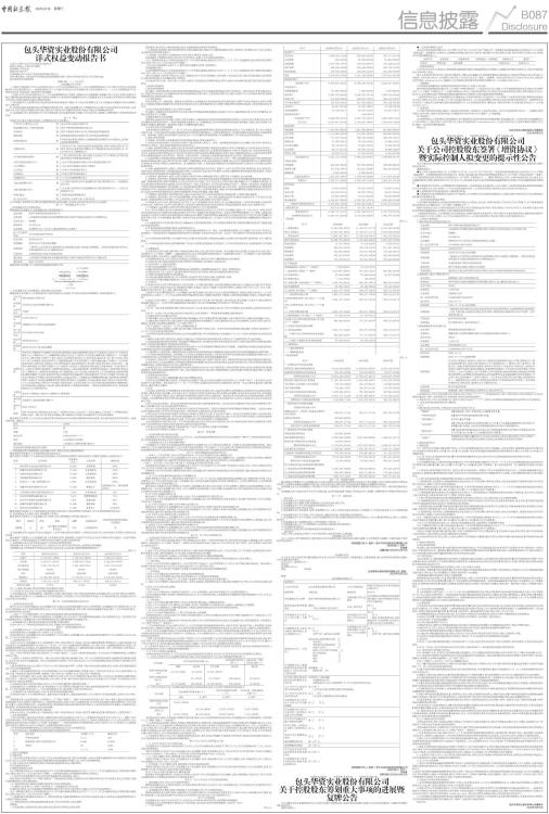 上市公司名称:包头华资实业股份有限公司 股票上市地点:上海证券交易所 股票简称:华资实业 股票代码:600191 信息披露义务人:滨州中裕科技投资发展有限公司 住所/通讯地址:山东省滨州市滨城区滨北街道梧桐五路91号滨州中裕食品有限公司12号楼305室 股份变动性质:间接收购 签署日期:二〇二五年四月 信息披露义务人声明 一、本报告书系依据《中华人民共和国公司法》《中华人民共和国证券法》《上市公司收购管理办法》《公开发行证券的公司信息披露内容与格式准则第15号一一权益变动报告书》《公开发行证券的公司信息披露内容与格式准则第16号一一上市公司收购报告书》及其他相关法律、法规及部门规章的有关规定编写。 二、依据《中华人民共和国证券法》《上市公司收购管理办法》的规定,本报告书已全面披露信息披露义务人在包头华资实业股份有限公司拥有权益的股份变动情况;截至本报告书签署之日,除本报告书披露的信息外,信息披露义务人没有通过任何其他方式增加或减少其在包头华资实业股份有限公司拥有的权益。 三、信息披露义务人签署本报告书已获得必要的授权和批准,其履行亦不违反信息披露义务人公司章程或内部规则中的任何条款,或与之相冲突。 四、本次权益变动是根据本报告书所载明的资料进行的。除本信息披露义务人所聘请的具有从事证券业务资格的专业机构外,信息披露义务人没有委托或者授权任何其他人提供未在本报告书中列载的信息和对本报告书做出任何解释或者说明。 五、信息披露义务人承诺本报告书不存在虚假记载、误导性陈述或重大遗漏,并对其真实性、准确性、完整性承担个别和连带的法律责任。 第一节 释义 本报告书中,除非文意另有所指,下列简称具有如下特定意义: ■ 注:若本报告书中部分合计数与各加数直接相加之和在尾数上有差异,这些差异是由四舍五入造成的。 第二节 信息披露义务人介绍 一、信息披露义务人的基本情况 截至本报告书签署之日,信息披露义务人基本情况如下: ■ 截至本报告书签署之日,中裕科技投资股权结构如下图: ■ 二、信息披露义务人的控股股东、实际控制人基本情况 截至本报告书签署之日,中裕食品持有中裕科技投资100%股权,为中裕科技投资的控股股东,其基本情况如下: ■ 截至本报告书签署之日,宋民松先生通过持有中裕食品83.0743%股权间接控制中裕科技投资,系中裕科技投资的实际控制人,其基本情况如下表所示: ■ 三、信息披露义务人控制的核心企业和核心业务、关联企业及主营业务的情况 截至本报告书签署之日,中裕科技投资暂未投资企业。 截至本报告书签署之日,中裕科技投资控股股东中裕食品除直接控制中裕科技投资外,控制的其他核心企业情况如下: ■ 截至本报告书签署之日,中裕科技投资实际控制人宋民松先生除直接控制中裕食品外,不存在直接控制的其他企业。 四、信息披露义务人董事、监事、高级管理人员情况 截至本报告书签署之日,信息披露义务人董事、监事、高级管理人员的基本情况如下: ■ 五、信息披露义务人最近五年受过行政处罚(与证券市场明显无关的除外)、刑事处罚或者涉及与经济纠纷有关的重大民事诉讼或者仲裁 截至本报告书签署之日,信息披露义务人及其董事、监事、高级管理人员最近五年未受过与证券市场相关的行政处罚(与证券市场明显无关的除外)、刑事处罚或者涉及与经济纠纷有关的重大民事诉讼或者仲裁。 六、信息披露义务人的主营业务及最近三年财务状况的简要说明 信息披露义务人成立于2025年4月7日,为新设立公司,暂未开展实际经营,无经营相关财务数据。 信息披露义务人控股股东中裕食品2022年度、2023年度、2024年度主要财务数据和指标如下: 单位:元 ■ 注:(1)净资产收益率=净利润/净资产期末期初平均值; (2)2022年度、2023年度、2024年度财务数据均未经审计。 七、信息披露义务人及其控股股东、实际控制人在境内、境外其他上市公司拥有权益的股份达到或超过该公司已发行股份5%的情况 截至本报告书签署之日,信息披露义务人及其控股股东、实际控制人不存在拥有境内外其他上市公司权益的股份达到或超过该公司已发行股份5%的情况。 第三节 本次权益变动的决定及目的 一、本次权益变动的目的 基于对上市公司投资价值的认可,信息披露义务人拟通过本次权益变动获得上市公司的控制权。信息披露义务人将按照有利于上市公司可持续发展、有利于股东利益的原则,优化上市公司管理及资源配置,谋求长期可持续及健康稳定发展,提升上市公司的盈利能力,为全体股东带来良好回报。 二、未来十二个月内继续增持上市公司股份或者处置其已拥有权益的股份的计划 截至本报告书签署之日,除本次权益变动外,信息披露义务人无未来12个月内继续增持或减持上市公司股票的计划。若后续发生相关权益变动事项,信息披露义务人将严格按照相关法律法规的要求履行信息披露义务。 三、信息披露义务人做出本次权益变动决定所履行的相关程序 2025年4月11日,中裕科技投资股东作出决定,同意本次权益变动相关事项。 第四节 本次权益变动的方式 一、信息披露义务人在上市公司拥有权益的股份情况 本次权益变动前,信息披露义务人未持有上市公司股份。 本次权益变动后,信息披露
