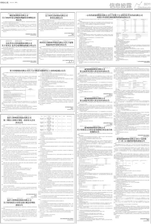 证券代码: 002724 证券简称:海洋王 公告编号:2025-019 海洋王照明科技股份有限公司 第三期员工持股计划第一次持有人会议 决议公告 本公司及董事会全体成员保证信息披露内容的真实、准确和完整,没有虚假记载、误导性陈述或重大遗漏。 海洋王照明科技股份有限公司(以下简称“公司”)第三期员工持股计划第一次持有人会议于2025年4月15日以通讯表决方式召开。会议由公司副董事长、董事会秘书陈艳女士召集和主持,会议应出席持有人1014人,实际出席930人,代表公司员工持股计划份额12,756,240份,占公司第三期员工持股计划(以下简称“员工持股计划”或“持股计划”或“本持股计划”或“本员工持股计划”)总份额的85.47%。本次会议的召集、召开和表决程序符合公司第三期员工持股计划的有关规定。会议以记名投票表决方式,审议通过了以下议案: 一、审议通过《关于设立公司第三期员工持股计划管理委员会的议案》 为保证公司第三期员工持股计划的顺利实施,保障持有人的合法权益,根据公司《第三期员工持股计划》的相关规定,持有人会议同意设立员工持股计划管理委员会,作为公司第三期员工持股计划的日常管理和监督机构,代表持有人行使股东权利。管理委员会由3名委员组成,设管理委员会主任1人,管理委员会委员的任期与本持股计划的存续期一致。 表决结果:同意12,756,240份,占出席持有人会议的持有人所持有效表决权份额总数的100.00%;反对0份,占出席持有人会议的持有人所持有效表决权份额总数的0.00%;弃权0份,占出席持有人会议的持有人所持有效表决权份额总数的0.00%。 二、审议通过《关于选举第三期员工持股计划管理委员会委员的议案》 选举李文兵、曾立、黎科文为公司第三期员工持股计划管理委员会委员,任期与公司本持股计划存续期一致。 李文兵、曾立、黎科文均为公司第三期员工持股计划持有人,与公司控股股东及实际控制人、持有公司5%以上股份的股东、公司其他董事、监事、高级管理人员不存在关联关系。 表决结果:同意12,756,240份,占出席持有人会议的持有人所持有效表决权份额总数的100.00%;反对0份,占出席持有人会议的持有人所持有效表决权份额总数的0.00%;弃权0份,占出席持有人会议的持有人所持有效表决权份额总数的0.00%。 同日,公司第三期员工持股计划管理委员会召开第一次会议,选举李文兵为公司第三期员工持股计划管理委员会主任委员,任期与本次员工持股计划存续期一致。 三、审议通过《关于授权公司第三期员工持股计划管理委员会办理员工持股计划相关事宜的议案》 根据公司第三期员工持股计划的有关规定,为保障公司第三期员工持股计划的顺利进行,授权管理委员会办理本持股计划的相关事宜,包括但不限于: 1.负责召集持有人会议,执行持有人会议的决议; 2.代表全体持有人对本员工持股计划进行日常管理; 3.办理员工持股计划份额认购事宜,代表本员工持股计划对外签署相关协议、合同; 4.负责决策是否聘请相关专业机构为持股计划日常管理提供管理、咨询等服务; 5.负责与专业机构的对接工作(如有); 6.管理持股计划的证券账户、资金账户及其他相关账户; 7.按照本员工持股计划相关规定对持有人权益进行处置以及再分配; 8.管理员工持股计划利益分配,在员工持股计划锁定期届满后,决定将标的股票出售后进行现金分配或将标的股票直接过户至持有人个人证券账户,或以上两种分配方式结合等相关事宜; 9.办理持股计划标的股票的锁定和解禁卖出的全部事宜; 10.决策员工持股计划弃购份额、被强制收回份额的归属; 11.负责员工持股计划的减持安排; 12.办理本员工持股计划份额继承登记; 13.制定、执行员工持股计划在存续期内参与公司增发、配股或发行可转换债券等再融资事宜的方案; 14.持有人会议授权的其他职责; 表决结果:同意12,756,240份,占出席持有人会议的持有人所持有效表决权份额总数的100.00%;反对0份,占出席持有人会议的持有人所持有效表决权份额总数的0.00%;弃权0份,占出席持有人会议的持有人所持有效表决权份额总数的0.00%。 特此公告! 海洋王照明科技股份有限公司 董事会 2025年4月16日 股票代码:002724 股票简称:海洋王 公告编号:2025-018 海洋王照明科技股份有限公司 关于使用闲置自有资金进行现金管理的 进展公告 本公司及董事会全体成员保证信息披露内容的真实、准确和完整,没有虚假记载、误导性陈述或重大遗漏。 海洋王照明科技股份有限公司(以下简称“公司”)于2024年4月19日召开第六届董事会第三次会议审议并通过了《关于使用自有闲置资金进行现金管理的议案》,同意公司使用人民币不超过10亿元的闲置自有资金进行现金管理,购买短期(不超过一年)、安全性高、流动性好的能保障本金安全的产品,有效期自获董事会审议通过之日起一年内有效。在上述额度及有效期内,资金可以滚动使用,且公司在任一时点购买现金管理产品总额不超过上述额度。公司董事会、监事会对上述议案均发表了明确同意的意见。具体内容详见公司2024年4月23日刊载于巨潮资讯网(www.cninfo.com.cn)的相关公告。 近期,公司的子公司使用闲置自有资金进行现金管理,具体情况如下: 一、本次使用闲置自有资金进行现金管理的基本情况 ■ 公司与上述受托人不存在关联关系。 二、现金管理的风险及