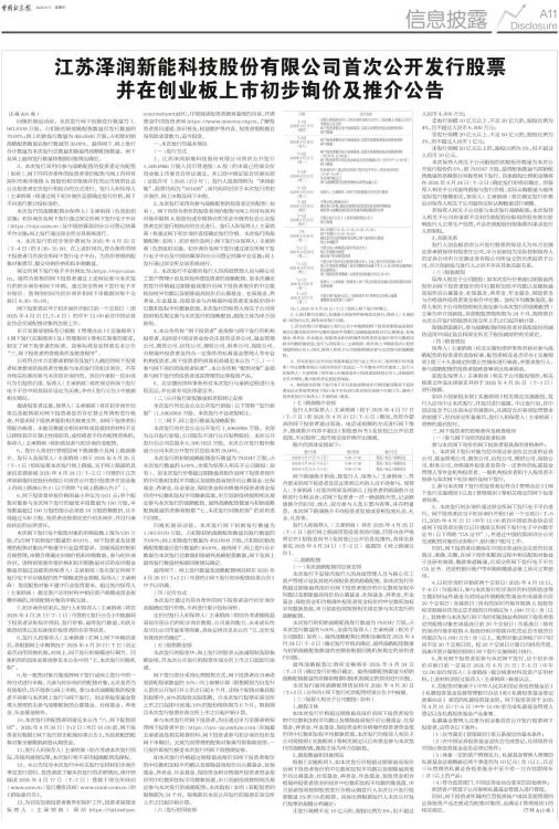 江苏泽润新能科技股份有限公司首次公开发行股票 并在创业板上市初步询价及推介公告 |