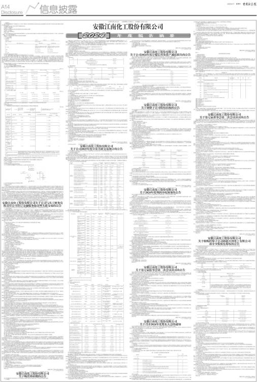 证券代码:002226 证券简称:江南化工 公告编号:2025-024 一、重要提示 本年度报告摘要来自年度报告全文,为全面了解本公司的经营成果、财务状况及未来发展规划,投资者应当到证监会指定媒体仔细阅读年度报告全文。 所有董事均已出席了审议本报告的董事会会议。 非标准审计意见提示 □适用 √不适用 董事会审议的报告期利润分配预案或公积金转增股本预案 √适用 □不适用 是否以公积金转增股本 □是 √否 公司经本次董事会审议通过的利润分配预案为:以2648922855为基数,向全体股东每10股派发现金红利0.65元(含税),送红股0股(含税),不以公积金转增股本。 董事会决议通过的本报告期优先股利润分配预案 □适用 √不适用 二、公司基本情况 1、公司简介 ■ 2、报告期主要业务或产品简介 公司是一家集民爆业务及新能源业务双核驱动的多元化上市公司。 公司在民爆业务领域,聚焦民爆产品、工程施工服务、矿山经营管理三大业务板块。主要从事工业炸药、工业雷管、工业索类等民用爆炸物品的研发、生产、销售,以及为客户提供工程施工服务等。目前,公司国内业务覆盖安徽、新疆、陕西、北京、山西、四川、河南、湖北、福建、广西、内蒙古、江苏、辽宁等十余个省、自治区和直辖市,并在资源大省新疆地区进行了重点战略布局。公司是国内民爆产品品种最齐全的民爆企业之一,爆破业务已完成国内重点资源区域的战略布局,公司依托“一带一路”倡议,巩固在亚、非、欧等地区多国布局,国际化业务布局已辐射纳米比亚、刚果(金)、蒙古、塞尔维亚、利比里亚、圭亚那等亚、非、拉、欧国家。公司整体产能及规模位居国内民爆上市公司前列。庆华汽车产品主要应用于汽车被动安全系统(如汽车安全气囊、安全带)的配套装置,是民用爆炸物品在汽车被动安全系统领域的应用。 新能源业务领域,公司全资子公司盾安新能源主要从事风力发电、光伏发电的项目开发、建设及运营。 3、主要会计数据和财务指标 (1) 近三年主要会计数据和财务指标 公司是否需追溯调整或重述以前年度会计数据 □是 √否 单位:元 ■ (2) 分季度主要会计数据 单位:元 ■ 上述财务指标或其加总数是否与公司已披露季度报告、半年度报告相关财务指标存在重大差异 □是 √否 4、股本及股东情况 (1) 普通股股东和表决权恢复的优先股股东数量及前10名股东持股情况表 单位:股 ■ 持股5%以上股东、前10名股东及前10名无限售流通股股东参与转融通业务出借股份情况 □适用 √不适用 前10名股东及前10名无限售流通股股东因转融通出借/归还原因导致较上期发生变化 □适用 √不适用 (2) 公司优先股股东总数及前10名优先股股东持股情况表 □适用 √不适用 公司报告期无优先股股东持股情况。 (3) 以方框图形式披露公司与实际控制人之间的产权及控制关系 ■ 5、在年度报告批准报出日存续的债券情况 □适用 √不适用 三、重要事项 1、公司于2024年9月29日召开的第六届董事会第三十三次会议审议通过了《关于拟公开挂牌转让控股子公司四川省南部永生化工有限责任公司55%股权的议案》,同意将四川省南部永生化工有限责任公司55%股权在重庆联合产权交易所公开挂牌转让,挂牌价格为人民币16,500.00万元。2024年12月18日,公司与受让方四川永生通企业管理服务有限责任公司签订了《产权交易合同》。具体内容详见江南化工分别于2024年9月30日、2024年12月20日、2025年1月21日在《证券时报》《上海证券报》《中国证券报》《证券日报》及巨潮资讯网披露的相关公告。 2、公司控股股东特能集团以现金方式受让陕西中兵先进制造投资基金合伙企业(有限合伙)所持陕西红旗民爆集团股份有限公司30,528,000股、占比19.3755%,对应股权价款为18,970.40万元;受让陕西省技术进步投资有限责任公司所持红旗民爆22,846,264股、占比14.5%,对应股权价款为14,196.90万元,价款合计33,167.30万元。受让完成后,特能集团直接持有红旗民爆53,374,264股、占比33.8755%。受让完成后,控股股东将持有红旗民爆33.8755%股份对应的表决权委托于公司。2025年2月28日,公司与特能集团、红旗民爆共同签署《关于陕西红旗民爆集团股份有限公司之表决权委托协议》,特能集团将其持有红旗民爆的53,374,264(占红旗民爆总股本的33.8755%)股份的表决权(包括因标的公司配股、送股、资本公积转增股本、拆股、股利分红等情形对授权股份数量进行调整后对应的全部表决权)委托给公司行使,委托期限为自协议生效之日起至特能集团不再持有红旗民爆股份之日为止。本次接受表决权委托后,公司持有红旗民爆股权比例不变,合计持有红旗民爆表决权比例由35.9721%增加至69.8476%。具体内容详见江南化工分别于2024年12月11日、2025年3月1日在《证券时报》《上海证券报》《中国证券报》《证券日报》及巨潮资讯网披露的相关公告。 证券代码:002226 证券简称:江南化工 公告编号:2025-022 安徽江南化工股份有限公司关于公司与兵工财务有限责任公司签订金融服务协议暨关联交易的公告 本公司及董事会全体成员保证公告内容真实、准确和完整,没有虚假记载、 误导性陈述或重大遗漏。 一、关联交易概述 1、为保证安徽江南化工股份有限公司(以下简称“公司”或“甲方”)及所属子公司各项生产经营任务的正常开展,公司于2024年10月与兵工