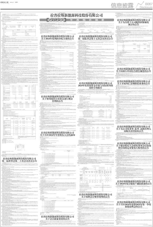 公司代码:688726 公司简称:拉普拉斯 拉普拉斯新能源科技股份有限公司 第一节 重要提示 1、本年度报告摘要来自年度报告全文,为全面了解本公司的经营成果、财务状况及未来发展规划,投资者应当到www.sse.com.cn网站仔细阅读年度报告全文。 2、重大风险提示 公司已在本报告中详细阐述公司在生产经营过程中可能存在的相关风险,敬请投资者关注本报告“第三节 管理层讨论与分析”之“四、风险因素”中的内容。 3、本公司董事会、监事会及董事、监事、高级管理人员保证年度报告内容的真实性、准确性、完整性,不存在虚假记载、误导性陈述或重大遗漏,并承担个别和连带的法律责任。 4、公司全体董事出席董事会会议。 5、容诚会计师事务所(特殊普通合伙)为本公司出具了标准无保留意见的审计报告。 6、公司上市时未盈利且尚未实现盈利 □是 √否 7、董事会决议通过的本报告期利润分配预案或公积金转增股本预案 公司拟向全体股东每10股派发现金红利人民币3.70元(含税)。截至2024年12月31日,公司总股本为405,326,189股,以此计算公司合计拟派发现金红利149,970,689.93元(含税),占2024年合并报表中归属于上市公司股东净利润的比例为20.56%。公司本年度不进行资本公积转增股本和送红股。在实施权益分派的股权登记日前若发生股本变动,公司拟维持每股分配比例不变,相应调整分配总额。公司2024年年度利润分配方案已经公司第一届董事会第二十次会议审议通过,尚需提交公司2024年年度股东大会审议。 8、是否存在公司治理特殊安排等重要事项 □适用 √不适用 第二节 公司基本情况 1、公司简介 1.1公司股票简况 √适用 □不适用 ■ 1.2公司存托凭证简况 □适用 √不适用 1.3联系人和联系方式 ■ 2、报告期公司主要业务简介 2.1主要业务、主要产品或服务情况 1、主要业务 公司是一家领先的高效光伏电池片核心工艺设备及解决方案提供商,主营业务为光伏电池片制造所需高性能热制程、镀膜及配套自动化设备等的研发、生产与销售,并可为客户提供半导体分立器件设备、所售设备的配套零部件及服务。 2、主要产品及服务 公司热制程设备主要包括硼扩散、磷扩散、氧化及退火设备等,镀膜设备主要包括低压化学气相沉积(LPCVD)设备、等离子体增强化学气相沉积(PECVD)设备、原子层沉积(ALD)设备、原子层边缘钝化沉积(EPD)设备等,自动化设备为可以有效提升工艺设备生产效率的配套上下料设备;除此之外,公司还可提供电池间隙贴膜机、激光设备等其他光伏设备。 公司半导体分立器件设备主要包括氧化、退火、镀膜和钎焊炉设备等一系列具有比较优势的产品。 公司配套产品及服务是公司根据客户的需求为销售的设备提供相应零部件及提供改造服务,属于客户对公司设备产品所产生的延伸需求。 2.2主要经营模式 1、盈利模式 公司作为一家面向全球、坚持自主创新的光伏和半导体设备企业,通过向客户提供专用设备以及工艺解决方案、设备维护及改造升级服务等,获得相应的收入,形成公司的盈利。 2、研发模式 公司主要采取自主研发模式,产品研发及产业化流程主要包括立项阶段、设计开发阶段、样机制作阶段、客户验证阶段和产业化应用阶段。研发人员背景涉及多个学科领域,能够有效支持工艺设计、产品、软件、零部件及核心材料等研究和开发工作。公司坚持自主创新,构建了完善的知识产权体系,并通过数字化手段不断提升研发管理水平和效率。 3、采购模式 公司主要采取“以销定产、以产定采”的模式。生产、研发等所用原材料的采购工作,由采购部门统一负责。计划物控部门依据订单需求情况,并结合实际库存,编制物料需求计划。采购部门根据经审核的物料需求计划适时采购,并进行采购过程管理。 4、生产模式 公司生产的设备属于专用设备,根据客户的差异化需求,相关产品具有一定的定制化属性,因此公司主要根据销售订单情况进行生产,即采用“以销定产”的生产模式。 5、销售模式 公司的销售模式为直销,主要通过接受邀标和直接接洽两种方式获取订单。公司组建了专业的销售和服务团队,负责市场推广、客户开发、销售及售后等服务。 2.3所处行业情况 1、行业的发展阶段、基本特点、主要技术门槛 (1)公司所属行业 根据《战略性新兴产业分类(2018)》,公司所处行业为太阳能设备和生产装备制造,属于新能源产业,具体为:“6、新能源产业”中的“6.3太阳能产业”中的“6.3.1太阳能设备和生产装备制造”中的“3825光伏设备及元器件制造”; 根据《国民经济行业分类与代码》(GB/T4754-2017),公司所处行业隶属于“电气机械和器材制造业”下的“光伏设备及元器件制造(3825)”; 光伏设备一般指光伏制造企业用于生产原料、电池及电池组件、零部件等产品中使用的机器设备,主要包括硅棒/硅锭制造设备、硅片制造设备、电池片制造设备、电池组件制造设备等。公司主营业务产品涵盖电池片制造设备、电池组件制造设备及配套自动化设备,其下游应用领域为光伏行业。 (2)行业发展阶段及特点 ①全球光伏市场需求成长空间广阔,中国光伏产业具备竞争优势 全球已有众多国家提出了“碳中和”气候目标,发展包括光伏在内的可再生能源已成为全球广泛共识。同时,随着光伏技术的持续进步,光伏发电成本快速下降,全球光伏市场需求