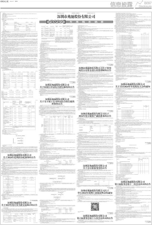 证券代码:002429 证券简称:兆驰股份 公告编号:2025-007 一、重要提示 本年度报告摘要来自年度报告全文,为全面了解本公司的经营成果、财务状况及未来发展规划,投资者应当到证监会指定媒体仔细阅读年度报告全文。 所有董事均已出席了审议本报告的董事会会议。 非标准审计意见提示 □适用 √不适用 董事会审议的报告期利润分配预案或公积金转增股本预案 √适用 □不适用 是否以公积金转增股本 □是 √否 公司经本次董事会审议通过的利润分配预案为:以4,526,940,607为基数,向全体股东每10股派发现金红利1.07元(含税),送红股0股(含税),不以公积金转增股本。 董事会决议通过的本报告期优先股利润分配预案 □适用 √不适用 二、公司基本情况 1、公司简介 ■ 2、报告期主要业务或产品简介 报告期内,公司实现营业收入203.26亿元 ,同比增长18.40%;实现归属于上市公司股东的净利润16.02亿元,同比上涨0.89%;实现归属于上市公司股东的扣非净利润为15.85亿元,同比增长3.71%。 (一)电视 依据市场调研机构CounterPoint Research发布的统计数据,受体育赛事的推动以及中国市场“家电补贴”政策的激励,2024年全球电视市场品牌整机出货量为2.3亿台,同比2023年增长约2%。ODM市场方面,据洛图科技统计,2024年全球电视ODM市场整体出货总量达1.12亿台,同比2023年增长5.7%。同时,头部份额进一步集中,2024年全球前十家专业ODM工厂份额占总量的74.3%,较2023年提升0.9个百分点。 DISCIEN(迪显咨询)数据显示,2024年全年公司智能显示终端业务实现出货量1250万台,同比增长14%。其中,电视ODM业务出货位居全球第二。增幅主要受以下因素推动:(1)电视ODM制造深耕海外市场,以Local的策略运营并开拓海外市场,公司主要客户为聚焦于本土渠道、内容OS运营的新兴品牌。(2)海外工厂在2024年上半年开始量产,推动公司进一步走向国际化。(3)公司紧跟行业趋势,依托Mini LED背光核心供应链的技术优势,积极发展Mini LED电视产品,公司Mini LED电视整机陆续出货,为客户实现电视产品的升级迭代进而提升品牌力。 (二)LED全产业链 1、LED芯片 兆驰半导体作为公司旗下根业务的子公司,确立了公司第二增长曲线。兆驰半导体立足化合物半导体底层材料与芯片技术,生产流程全面融入工业机器人,关键工序数字化作业率达到100%,在LED行业占据着领导地位。截至本报告期末,公司芯片业务总产销量为110万片/月(4寸片),其中氮化镓芯片产销量占据绝对优势,高达105万片/月(4寸片),蓝绿光芯片产能全球第一。砷化镓芯片产销量为5万片/月(4寸片),其中Mini RGB芯片全球市场占有率领先,在全球市场上占据主导地位。 技术端,兆驰半导体自主知识产权持续加深纵横布局,申请专利千余项。从2021年到2023年,兆驰半导体仅用三年时间就提前完成了十年的技术发明“当量”,获2022年国家专精特新“小巨人”企业创新50强第五位。其中,Mini/Micro LED技术不断突破产品制程极限,实现良率、效率双提升。Mini LED方面,兆驰半导体持续突破RGB芯片键合技术、光效和波长等难题,形成了亮度高、波长一致性优、亮度均匀的Mini LED芯片量产能力,同时微缩化进展顺利,2024年Mini LED芯片尺寸从03*06mil微缩到02*06 mil,打破了行业困境,并持续引领行业发展方向。Micro LED方面,兆驰半导体已设立研究部门,目前已构建了涵盖材料外延、芯片制造、转移集成、可靠性评估等环节的完备的Micro LED智造创新链。结合自身在数字智能等新型制造方面的优势,兆驰半导体能够大幅度缩减研发周期、节省开发成本、提升良率和效率并推动商业化。 产品方面,报告期内,兆驰半导体实现多维度全方面发展。一方面,为提升芯片产值,兆驰半导体在已有产出量的前提下,持续调整产品结构,其中Mini RGB芯片单月出货高达15000KK组,市场占有率超过50%。另一方面,兆驰半导体持续推进新品开发进度,报告期内车用芯片已凭借高可靠性进入多家客户供应链,同时大颗倒装芯片产品开发顺利,为开发更多应用场景提供支撑。 2、LED封装 公司在LED封装领域已形成全矩阵产品布局,主要服务于LED照明、LED背光及LED显示三大主流应用领域,同时积极拓展上述应用领域中智能照明、健康照明、植物照明、汽车照明、新型显示等细分新兴市场。 其中,在Mini LED背光方面,公司通过材料革新、工艺突破、设计迭代等方式,结合公司在LED领域的垂直一体化布局,持续优化Mini LED背光设计方案,提高Mini LED背光的性价比,推动Mini LED背光产品持续提高渗透率并加快商业化进程。 产能方面,倒装COB封装工艺有望成为主流高性价比方案,并具有长期降本优势。2024年公司积极扩充Mini COB背光模组产线,截至报告期末已以50条COB线体的产能规模成为全球最大的Mini COB背光模组生产厂家。 报告期内,公司同步对Mini COB模组进行产品和技术升级。产品方面,公司成功推出大功率COB白光灯条、Mini COB蓝光灯条及Mini COB白光方案(CSP),持续完善Mini COB背光模组产品布局。技术方面,公司将面型球头升级为M形点胶,提升了Mini COB背光模组产品的光学性能和生产效率,OP值则由1:2.2升级到1:3.5,达到行业领先水平。 3、Mini COB直显应用 产能端,截至本报告期末,以P1.25点间距为基准,公司COB显示模组产能达到25000平方米/月。2024年全年公司出货量超COB行业的50%,稳居行业首位。 产品端,公司现有八大产品线,产品点间距覆盖P0.5-P2.0,其中P0.9-P1.5的显示模组已