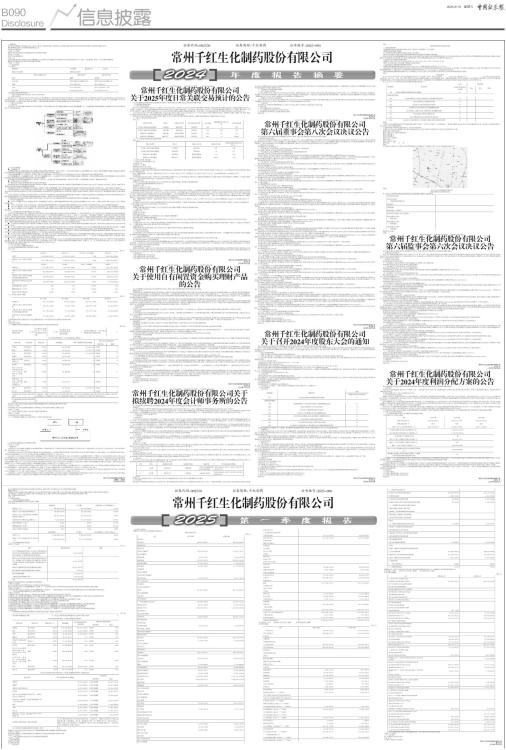 证券代码:002550 证券简称:千红制药 公告编号:2025-005 一、重要提示 本年度报告摘要来自年度报告全文,为全面了解本公司的经营成果、财务状况及未来发展规划,投资者应当到证监会指定媒体仔细阅读年度报告全文。 所有董事均已出席了审议本报告的董事会会议。 非标准审计意见提示 □适用 √不适用 董事会审议的报告期利润分配预案或公积金转增股本预案 √适用 □不适用 是否以公积金转增股本 □是 √否 公司经本次董事会审议通过的利润分配预案为:以1249800000为基数,向全体股东每10股派发现金红利1.2元(含税),送红股0股(含税),不以公积金转增股本。 董事会决议通过的本报告期优先股利润分配预案 □适用 □不适用 二、公司基本情况 1、公司简介 ■ 2、报告期主要业务或产品简介 (一)、期内公司所从事的主要业务、主要产品及其用途 一) 主营业务范围 报告期内,公司主营业务范围:许可项目:药品生产;药品委托生产;药品批发;药品零售;药品进出口(依法须经批准的项目,经相关部门批准后方可开展经营活动,具体经营项目以审批结果为准)。一般项目:技术进出口;进出口代理;医用包装材料制造;初级农产品收购;技术服务、技术开发、技术咨询、技术交流、技术转让、技术推广;信息咨询服务(不含许可类信息咨询服务);非居住房地产租赁;住房租赁。(除依法须经批准的项目外,凭营业执照依法自主开展经营活动) 二)主要产品及其用途 (1)主要产品 公司主要产品为药用酶和多糖类两大系列生化药物。其中药用酶品种主要有胰激肽原酶系列、复方消化酶胶囊(Ⅱ)、门冬酰胺酶系列和弹性酶系列;多糖类品种主要有肝素钠及低分子肝素类系列品种。 ■ ■ (2)产品主要用途: ● 药用酶类产品 √胰激肽原酶系列:胰激肽原酶、注射用胰激肽原酶、胰激肽原酶肠溶片(商品名:怡开)。本品为血管扩张药,有改善微循环作用。主要用于微循环障碍性疾病,如糖尿病引起的肾病,周围神经病,视网膜病,眼底病及缺血性脑血管病,也可用于高血压病的辅助治疗。 √复方消化酶胶囊(Ⅱ)(商品名:千红怡美):微丸定点释放制剂。本品为助消化药,用于食欲缺乏,消化不良,为医院处方和OTC双跨性的药品。 √门冬酰胺酶系列:门冬酰胺酶(埃希)、注射用门冬酰胺酶(埃希)。本品适用于治疗急性淋巴细胞性白血病(简称急淋)、急性粒细胞性白血病、急性单核细胞性白血病、慢性淋巴细胞性白血病、霍奇金病及非霍奇金病淋巴瘤、黑色素瘤等。 √弹性酶系列:弹性酶、弹性酶肠溶片(商品名:千红怡甘)。本品用于Ⅱ和Ⅳ型高脂血症(尤其适用于Ⅱ型)、动脉粥样硬化、脂肪肝、糖尿病性肾病变。 ● 肝素钠及低分子肝素系列: √肝素钠系列:肝素钠、肝素钠注射液、肝素钠封管注射液。 肝素钠注射液用于防治血栓形成或栓塞性疾病(如心肌梗塞、血栓性静脉炎、肺栓塞等);各种原因引起的弥漫性血管内凝血(DIC);也用于血液透析、体外循环、导管术、微血管手术等操作中及某些血液标本或器械的抗凝处理。 肝素钠封管注射液用于维持静脉内注射装置(如留置针、导管)的管腔通畅,可用于静脉内放置注射装置后、每次用药后以及每次采血后使用本品。本品不能用于抗凝治疗。 √依诺肝素钠系列:依诺肝素钠、依诺肝素钠注射液。用于预防静脉血栓栓塞性疾病(预防静脉内血栓形成),特别是与骨科或普外手术有关的血栓形成;治疗已形成的深静脉栓塞,伴或不伴有肺栓塞,临床症状不严重,不包括需要外科手术或溶栓剂治疗的肺栓塞;治疗不稳定性心绞痛及非Q波心肌梗死,与阿司匹林合用;用于血液透析体外循环中,防治血栓形成。 √达肝素钠系列:达肝素钠、达肝素钠注射液。用于治疗急性深静脉血栓。预防急性肾功能衰竭或慢性肾功能不全者进行血液透析和血液过滤期间体外循环系统中的凝血;治疗不稳定型冠状动脉疾病,如:不稳定型心绞痛和非Q波型心肌梗死。预防与手术有关的血栓形成。 √那屈肝素钙系列:那屈肝素钙、那屈肝素钙注射液。在外科手术中,用于静脉血栓形成中度或高度危险的情况,预防静脉血栓栓塞性疾病。 (3)研发中的重要管线: ● QHRD107胶囊:QHRD107胶囊是国内首个获批临床的口服的CDK9靶向激酶抑制剂创新药物,适应症是急性髓系白血病(AML),目前已完成Ⅰ期临床试验,正处于Ⅱ期临床试验阶段。 ● QHRD106注射液:QHRD106注射液是一种新型长效激肽释放酶药物,适应症是新型急性缺血性脑卒中(AIS),目前已完成Ⅰ期临床试验,正处于Ⅱ期临床试验阶段。 ● QHRD211注射液:QHRD211注射液是一种基因重组人生长激素(rhGH)创新药物,适应症是生长激素缺乏症(GHD),目前已完成Ⅰ期临床试验,正处于Ⅱ期临床试验阶段。 ● QHRD110胶囊:QHRD110胶囊是一种口服的CDK4/6靶向激酶抑制剂创新药物,适应症是恶性脑胶质瘤(GBM),目前已在澳大利亚完成Ⅰ期临床试验,正在国内开展桥接临床试验。 (二)、公司所属行业的发展阶段及公司行业地位 公司属于生物医药制造行业。生物医药行业是以现代生命科学为基础,通过生物技术手段进行药物研发、生产和应用的高科技产业,也是医药行业中创新最活跃、技术含量最高的细分领域。生物医药产业作为全球范围内的新兴产业正在成为当今世界最活跃的战略性新兴产业之一。党的二十大报告提出 “推进健康中国建设”“深化医药卫生体制改革,
