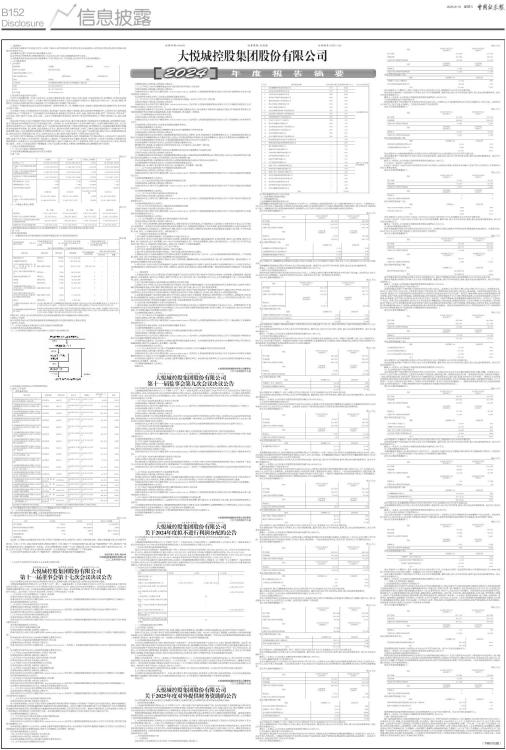 一、重要提示 本年度报告摘要来自年度报告全文,为全面了解本公司的经营成果、财务状况及未来发展规划,投资者应当到证监会指定媒体仔细阅读年度报告全文。 全体董事均出席了审议本次年报的董事会会议。 信永中和会计师事务所(特殊普通合伙)为本公司出具了标准无保留意见的审计报告。 公司经董事会审议通过的利润分配预案为:不进行现金分红、不送红股,也不进行资本公积金转增股本。 二、公司基本情况 1、公司简介 ■ 2、报告期主要业务或产品简介 公司作为中粮集团唯一的地产业务平台,从事的主要业务包括:房地产开发、经营、销售、出租及管理住宅、商用物业,经营业态涵盖住宅、商业地产及部分产业地产。公司旗下拥有在香港联合交易所上市的大悦城地产有限公司(股票代码:00207.HK),其开发、管理、经营的以大悦城为品牌的城市综合体商业地产在中国商业地产领域处于领先地位。 公司定位“卓越的城市运营与美好生活服务商”,深耕京津冀、长三角、粤港澳大湾区、成渝等主要城市群及周边辐射区域,业务布局全国38个城市。 在住宅地产领域,公司聚焦新生代居住需求,通过构建产品标准、精细产品管理、强化品质管控等管理动作,在原有住宅产品的基础上持续升级,以“中粮好房子”为目标构建产品研发新体系,洞见新生代的审美、喜好、态度,同频居住理想,发布“美好由你,共悦未来”生活主张,实现与新生代共建、共创、共悦。未来公司将聚焦壹号系和悦系,满足客户多层次的购房需求,并不断打造明星产品,提升品牌影响力。 在商业地产领域,公司以大悦城和大悦汇为标准产品线,立体化布局,通过不断创新线下场景体验和大数据系统,实现精细化运营,成为引领城市居民消费和生活方式升级的重要力量。大悦城以18-35岁城市新生代及青年客群为核心,以城市客群的潮流、娱乐、社交生活需求为经营导向,以“年轻、时尚、潮流、品位”为品牌内涵,提供时尚感、引领性的服务体验,倡导潮流文化,构建极具潮流影响力的辐射全域的城市商业地标,致力影响、启发消费者生活方式,推动商业革新与城市发展。大悦汇以城市主城区或城市副中心的城市新中产及家庭客群为核心,以区域客群的高频美好生活需求为经营导向,以“休憩、社交、生活、品位”为品牌内涵,提供生活化、情感性的服务体验,倡导生活文化,构建更加丰富、多元、包容的生活方式,致力城市区域价值提升,引领区域生活品质升级。 在产业地产和写字楼领域,公司依托强大的资源优势和卓越的运营能力,取得了稳健发展。写字楼业务始于上世纪90年代,经过多年深耕,业务分布在香港、北京及深圳等一线和核心二线城市。产业园业务立足大健康、新能源、信息科技三大优势产业领域,打造集聚全球创新资源的产业服务平台,充分发挥资源的协同整合能力,提升产业链水平,助力产业链布局、转型、升级,目前业务分布于北京、深圳等核心城市。未来,公司将通过轻资产管理输出、中资产运营等合作模式,不断做大管理规模,树立管理输出的行业标杆。 3、主要会计数据和财务指标 (1) 近三年主要会计数据和财务指标 公司是否需追溯调整或重述以前年度会计数据 □是 √否 单位:元 ■ (2) 分季度主要会计数据 单位:元 ■ 上述财务指标或其加总数是否与公司已披露季度报告、半年度报告相关财务指标存在重大差异 □是 √否 4、股本及股东情况 (1) 普通股股东和表决权恢复的优先股股东数量及前10名股东持股情况表 单位:股 ■ 持股5%以上股东、前10名股东及前10名无限售流通股股东参与转融通业务出借股份情况 □适用√不适用 前10名股东及前10名无限售流通股股东因转融通出借/归还原因导致较上期发生变化 □适用√不适用 (2) 公司优先股股东总数及前10名优先股股东持股情况表 公司报告期无优先股股东持股情况。 (3) 以方框图形式披露公司与实际控制人之间的产权及控制关系 ■ 5、在年度报告批准报出日存续的债券情况 √适用 □不适用 (1) 债券基本信息 ■ 注:23中粮置业MTN001期限为2+N,24中粮置业MTN001期限为3+N (2) 公司债券最新跟踪评级及评级变化情况 报告期内信用评级结果未调整,主体信用及债券信用评级均为AAA。 (3)截至报告期末公司近2年的主要会计数据和财务指标 单位:万元 ■ 三、重要事项 2024年,公司锚定高质量发展目标任务,实现生产经营稳中有进、质效向好,各项工作取得新成效。销售方面跑赢大势,排名提升至第23位1,同比上升6位。商业方面再拓版图,圆满完成厦门、三亚、海淀三个大悦城高质量开业;建立起“投融建管退”平台,成功发行了成都大悦城商业REIT,发展路径进一步拓宽。改革方面锐意进取,明确了“1123”战略体系,优化了组织架构,重塑了全新的企业文化。同时,公司全力以赴“严投资、保交付、稳结算、强运营”,为未来高质量、可持续发展打下了坚实基础。 公司2024年年度报告全文第六节“重要事项”,详细描述了报告期内发生的重要事项。 法定代表人签名:姚长林 大悦城控股集团股份有限公司 二〇二五年四月十七日 (1 2024年中指研究院中国房地产企业销售业绩排行榜) 证券代码:000031 证券简称:大悦城 公告编号:2025-014 大悦城控股集团股份有限公司 第十一届董事会第十七次会议决议公告 本公司及董事会全体成员保证信息披露的