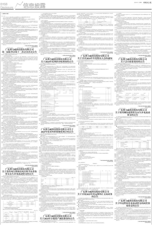 2025-021)。 (十九)、审议《关于确认董事2024年度薪酬及2025年度董事薪酬方案的议案》 董事会5位董事回避表决,本议案直接提交公司股东大会审议。 在提交本次董事会审议前,该议案已经董事会薪酬与考核委员会审议,全体委员已回避表决。 (二十)、审议通过《关于使用部分自有资金进行现金管理的议案》 鉴于公司自有资金存在暂时闲置的情形,在不影响公司正常经营的前提下,公司拟使用不超过5亿元人民币或等额外币(含本数)自有资金进行现金管理,有效期自董事会审议通过之日起十二个月内,在资金额度及有效期内可循环使用。 表决结果:同意5票,反对0票,弃权0票。 具体内容详见公司同日披露于上海证券交易所网站(www.sse.com.cn)的《广东博力威科技股份有限公司关于使用部分自有资金进行现金管理的公告》(公告编号:2025-015)。 (二十一)、审议通过《关于确认高级管理人员2024年度薪酬及2025年度高级管理人员薪酬方案的议案》 公司高级管理人员的薪酬根据公司《董事、监事和高级管理人员薪酬管理制度》进行管理,符合公司所处行业的薪酬水平及公司的实际经营情况,薪酬的发放程序能严格按照有关考核激励的规定执行,符合有关法律、法规及公司章程等的规定,不存在损害公司及股东利益的情形。 鉴于董事张志平系公司总经理,故回避本议案的表决。 表决结果:同意4票,反对0票,弃权0票。 在提交本次董事会审议前,该议案已经董事会薪酬与考核委员会审议通过。 (二十二)、审议通过《关于使用剩余超募资金永久补充流动资金的议案》 公司本次使用剩余超募资金永久补充流动资金有利于提高募集资金的使用效率,降低财务费用,符合公司和全体股东的利益不影响募集资金投资计划的正常进行,不存在变相改变募集资金投向或损害股东利益的情况,符合《上市公司监管指引第2号一一上市公司募集资金管理和使用的监管要求》《上海证券交易所科创板上市公司自律监管指引第1号一一规范运作》等法律、法规及规范性文件的有关规定。 表决结果:同意5票,反对0票,弃权0票。 本议案尚需提交公司股东大会审议。 具体内容详见公司同日披露于上海证券交易所网站(www.sse.com.cn)的《广东博力威科技股份有限公司关于使用剩余超募资金永久补充流动资金的公告》(公告编号:2025-020)。 特此公告。 广东博力威科技股份有限公司董事会 2025年4月18日 证券代码:688345 证券简称:博力威 公告编号:2025-018 广东博力威科技股份有限公司 第二届监事会第十二次会议决议公告 本公司监事会及全体监事保证本公告内容不存在虚假记载、误导性陈述或者重大遗漏,并对其内容的真实性、准确性和完整性依法承担法律责任。 一、监事会会议召开情况 广东博力威科技股份有限公司(以下称“公司”)第二届监事会第十二次会议于2025年4月17日在公司会议室以现场加通讯方式召开。本次监事会会议通知已于2025年4月7日以专人送达的方式送达给全体监事。本次会议应到监事3人,实到监事3人,会议由监事会主席何启明先生召集和主持。本次会议的召集、召开符合《中华人民共和国公司法》《上海证券交易所科创板股票上市规则》等相关法律、行政法规、规范性文件及《广东博力威科技股份有限公司章程》的有关规定。 二、监事会会议审议情况 本次会议议案经与会监事审议,形成如下决议: (一)审议通过《关于2024年度监事会工作报告的议案》 表决结果:同意3票;反对0票;弃权0票。 本议案尚需提交公司股东大会审议。 (二)审议通过《关于2024年度财务决算报告的议案》 表决结果:同意3票;反对0票;弃权0票。 本议案尚需提交公司股东大会审议。 (三)审议通过《关于2024年年度报告及其摘要的议案》 经审核,监事会认为:董事会编制和审议公司2024年年度报告的程序符合法律、行政法规及中国证监会的规定,报告内容真实、准确、完整地反映了上市公司的实际情况,不存在任何虚假记载、误导性陈述或者重大遗漏。 表决结果:同意3票;反对0票;弃权0票。 本议案尚需提交公司股东大会审议。 具体内容详见公司同日披露于上海证券交易所网站(www.sse.com.cn)的《广东博力威科技股份有限公司2024年年度报告》《广东博力威科技股份有限公司2024年年度报告摘要》 (四)审议通过《关于2024年度募集资金存放与实际使用情况的专项报告的议案》 经审核,监事会认为:董事会编制的公司《2024年度募集资金存放与实际使用情况的专项报告》真实、准确、完整地反映了公司报告期内募集资金存放与使用情况,不存在任何虚假记载、误导性陈述或者重大遗漏。公司2024年度募集资金的存放与使用履行了必要的程序,符合相关法律、行政法规、规范性文件及《公司章程》《公司募集资金管理制度》的相关规定,不存在募集资金存放与使用违法、违规或损害公司股东尤其是中小股东利益的情形。 表决结果:同意3票;反对0票;弃权0票。 具体内容详见公司同日披露于上海证券交易所网站(www.sse.com.cn)的《广东博力威科技股份有限公司关于2024年度募集资金存放与实际使用情况的专项报告》(公告编号:2025-010)。 (五)审议通过《关于2024年度利润分配预案的议案》 经审核,监事会认为:公司2024年度利润分配预案及其决策程序符合法律法规及《公司章程》等相关规定,充分考虑了公司盈利情况及资金需求等因