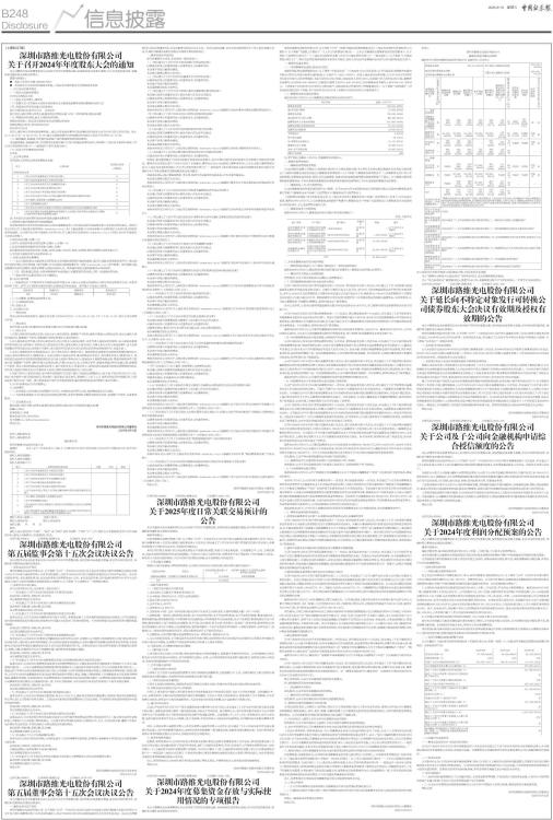 深圳市路维光电股份有限公司 关于召开2024年年度股东大会的通知 |