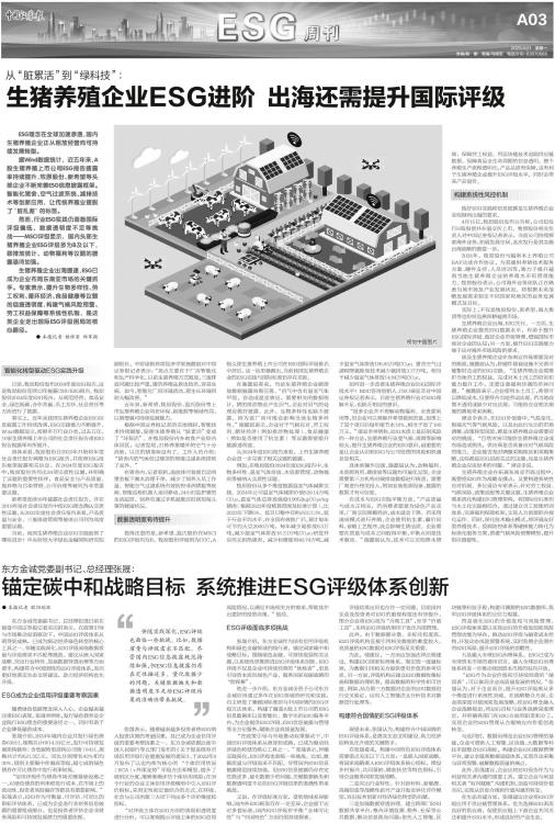 ESG理念在全球加速渗透,国内生猪养殖企业正从粗放经营向可持续发展转型。 据Wind数据统计,近五年来,A股生猪养殖上市公司ESG报告披露率持续提升,牧原股份、新希望等头部企业不断完善ESG信息披露框架。智能化猪舍、空气过滤系统、减排技术等创新应用,让传统养殖业摆脱了“脏乱差”的标签。 然而,行业ESG实践仍面临国际评级偏低、数据透明度不足等挑战——MSCI评级显示,国内头部生猪养殖企业ESG评级多为B及以下,碳排放统计、动物福利等议题的披露亟待加强。 生猪养殖企业出海提速,ESG已成为企业布局东南亚市场的关键抓手。专家表示,提升生物多样性、劳工权利、循环经济、食品健康等议题的信披透明度,构建气候风险预警、劳工权益保障等系统性机制,是这类企业走出国际ESG评级困局的核心路径。 ● 本报记者 杨梓岩 郑萃颖 智能化转型驱动ESG实践升级 日前,牧原股份发布2024年度ESG报告,这是牧原股份连续12年披露CSR/ESG报告。牧原股份2024年度ESG报告,从规范经营、食品安全、绿色低碳、合作共赢、员工关怀、社会责任等方面进行了披露。 事实上,近年来我国生猪养殖企业ESG信息披露工作持续改善,ESG实践能力不断提升。Wind数据显示,按照申万行业分类,过去五年,10家生猪养殖上市公司的社会责任报告或ESG报告披露率有所提升。 具体来看,牧原股份自2022年开始将年度社会责任报告调整为ESG报告,并按照ESG报告框架披露相关信息。在2024年度ESG报告中,牧原股份共列出24项实质性议题,并明确了议题的重要性排序,食品安全与产品质量、废弃物与污染管理、公司治理等被列为非常重要议题。 新希望连续16年披露社会责任报告,并在2019年度社会责任报告中按ESG理念确认实质性议题。从2023年度社会责任报告来看,产品质量与安全、三废排放管理等被该公司列为高度重要议题。 当前,我国生猪养殖企业ESG实践取得了哪些进步?中央财经大学绿色金融国际研究院副院长、中财绿指首席经济学家施懿宸对中国证券报记者表示:“亮点主要在于厂房智能化和生产科学化。以前生猪养殖方式粗放,三废排放问题比较严重,猪的养殖品质也较差,容易生病。如今,智能化厂房环境清洁,猪生长环境得到大幅改善。” 近年来,新希望、牧原股份、温氏股份等上市生猪养殖企业均在环保、新能源等领域布局,以期增强可持续发展能力。 根据中国证券报记者的实地调研,智能技术持续赋能,促使生猪养殖从“脏累活”变成了“环保活”。在牧原股份内乡肉食产业综合体园区,记者发现,21栋养猪楼外的空气十分清新,以往的猪臭味没有了。工作人员介绍:“猪舍内的气体经过楼顶的智能过滤系统排到了室外。” 在猪舍内,记者看到,溢流排污装置自动将猪舍板下粪水清理干净,减少了饲养人员工作量。智能空气过滤系统有效防控非洲猪瘟等疾病。智能巡检机器人来回移动,24小时监护猪的生活起居。饲养员通过手机就能实时获知每头猪的健康状况。 数据透明度有待提升 值得注意的是,新希望、温氏股份在MSCI的ESG评级均为B,牧原股份评级则为CCC,A股头部生猪养殖上市公司在ESG国际评级排名中居后。这一结果暴露出,当前我国生猪养殖企业的ESG实践与国际标准仍存在差距。 在施懿宸看来,当前生猪养殖企业碳排放数据披露尚需完善。“沼气中含有温室气体甲烷,会造成温室效应,需要相关的数据统计。猪的排泄物会产生沼气,企业对沼气的处理应做好披露。此外,生物多样性也缺少披露,因为盖厂房可能会影响当地生物多样性。”施懿宸表示,企业对于气候应对、劳工权利、循环经济(例如排泄物处理)、食品健康(例如是否使用了抗生素)等议题需要提升披露透明度。 从2024年度ESG报告来看,上市生猪养殖企业进一步完善了相关议题的披露。 例如,在牧原股份2024年度ESG报告中,生物多样性、温室气体排放、水资源管理、动物福利等被纳入实质性议题。 牧原股份从多个维度披露温室气体减排实践。2024年公司温室气体减排价值529.14万吨CO2e,温室气体总排放强度0.9052kgCO2e/kg猪肉(根据2023年度核算范围及标准计算),比2023年下降6%。低豆日粮中豆粕占比7.3%,低于行业平均水平,在全国有效推广后,预计每年可节约大豆2000万吨,每年减少氮排放8.3万吨,减少温室气体排放16.13万吨CO2e;研发并应用无供热猪舍,减少标煤使用40.74万吨,减少温室气体排放105.93万吨CO2e;猪舍空气过滤和降氨除臭技术减少氨排放3.17万吨,相当于减少温室气体排放14.84万吨CO2e。 如何进一步改善生猪养殖企业ESG国际评级水平?MSC咨询创始人、CEO谭亚幸对中国证券报记者表示,目前生猪养殖行业对ESG理解不足,也缺乏相应的意识。 “很多企业并不理解动物福利、水资源利用等,但企业可以理解并希望做到的是,如果上了某个项目后每年能节水18%,相当于省了180万元。”谭亚幸举例称,ESG本质上是识别风险的一种方法,生猪养殖行业受气候、周期等影响较大,提升生猪养殖企业的ESG意识,最重要的是让企业认识到ESG与公司经营的风险和机遇息息相关。 具体到操作层面,施懿宸认为,动物福利、水资源利用、碳排放等议题均可量化呈现。企业需要第三方机构对碳排放数据进行核查,需要厂商进行相关投入,例如安装检测设备,披露的数据才有可信度。 在成本与ESG实践平衡方面,“产品质量与成本正相关,若消费者愿意为绿色产品买