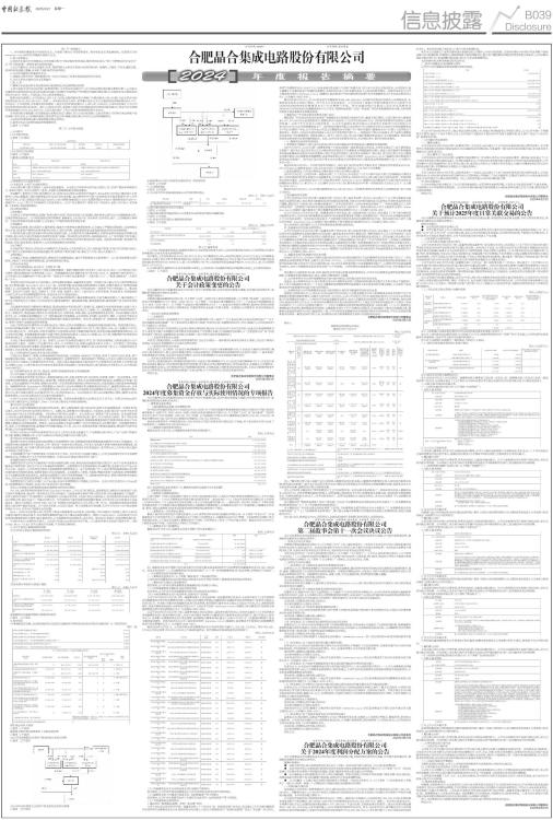 公司代码:688249 公司简称:晶合集成 第一节 重要提示 1、本年度报告摘要来自年度报告全文,为全面了解本公司的经营成果、财务状况及未来发展规划,投资者应当到www.sse.com.cn网站仔细阅读年度报告全文。 2、重大风险提示 公司已在本报告中详细阐述公司在经营过程中可能面临的各种风险,敬请查阅本报告“第三节管理层讨论与分析”之“四、风险因素”,请投资者注意投资风险。 3、本公司董事会、监事会及董事、监事、高级管理人员保证年度报告内容的真实性、准确性、完整性,不存在虚假记载、误导性陈述或重大遗漏,并承担个别和连带的法律责任。 4、公司全体董事出席董事会会议。 5、容诚会计师事务所(特殊普通合伙)为本公司出具了标准无保留意见的审计报告。 6、公司上市时未盈利且尚未实现盈利 □是 √否 7、董事会决议通过的本报告期利润分配预案或公积金转增股本预案 公司于2025年4月18日召开第二届董事会第十九次会议审议通过了《关于2024年度利润分配方案的议案》,公司拟以实施权益分派股权登记日登记的总股本扣减公司回购专用证券账户中的股份为基数分配利润,向全体股东每10股派发现金红利1.00元(含税),不送红股,不以公积金转增股本。 截至本报告披露日,公司总股本2,006,135,157股,扣除回购专用证券账户中股份数62,088,500股,以此计算合计拟派发现金红利194,404,665.70元(含税)。本年度以现金为对价,采用集中竞价方式已实施的股份回购金额为891,677,308.30元(不含印花税、交易佣金等交易费用),现金分红和回购金额合计1,086,081,974.00元,占本年度归属于上市公司股东净利润的比例为203.83%。其中,以现金为对价,采用集中竞价方式回购股份并注销的回购金额0元,现金分红和回购并注销金额合计194,404,665.70元,占本年度归属于上市公司股东净利润的比例为36.48%。 在利润分配方案披露日至实施权益分派股权登记日期间,若公司应分配股数(总股本扣除公司回购专用证券账户股份余额)发生变动,公司拟维持每股分配比例不变,相应调整分配总额,并另行公告具体调整情况。 公司2024年度利润分配方案尚需提交股东会审议。 8、是否存在公司治理特殊安排等重要事项 □适用 √不适用 第二节 公司基本情况 1、公司简介 1.1公司股票简况 √适用 □不适用 ■ 1.2公司存托凭证简况 □适用 √不适用 1.3联系人和联系方式 ■ 2、报告期公司主要业务简介 2.1主要业务、主要产品或服务情况 公司主要从事12英寸晶圆代工业务及其配套服务。公司致力于研发并应用行业先进的工艺,为客户提供多种制程节点、多种应用的工艺平台晶圆代工业务,并提供光刻掩模版制造等配套服务。 在晶圆代工制程节点方面,报告期内公司已实现150nm至55nm制程平台的量产,40nm高压OLED显示驱动芯片小批量生产,28nm逻辑芯片通过功能性验证并成功点亮电视面板,28nm制程平台其他产品的研发正在稳步推进中;在工艺平台应用方面,公司已具备显示驱动芯片(DDIC)、CMOS图像传感器芯片(CIS)、电源管理芯片(PMIC)、微控制器芯片(MCU)、逻辑芯片(Logic)等工艺平台晶圆代工的技术能力。公司产品主要应用于智能手机、平板显示、安防、汽车电子、家用电器、工业控制、物联网等领域。 2.2主要经营模式 1.研发模式 公司制定了研发管理制度,明确了研发过程中各部门的权责关系与作业流程,确保研发过程符合公司策略发展方向,实现经营效益最大化。公司研发流程包括市场调查、策略制定、可行性评估、项目审查、技术开发、流片、工艺制程验证等环节。为保证研发效率及成本控制,公司还制定了严格的研发进度管控方案。 2.采购模式 为加强成本控制、保证晶圆代工服务质量、提高生产效率和存货周转效率,公司建立了严格的采购流程、完善的供应商认证准入机制和严格的供应商考核评价体系,以保证原材料、设备零配件及设备质量的稳定性和供应的持续性。 公司的供应商主要包括原材料供应商和设备供应商,公司通常采用直接采购模式,如果终端供应商采取经销模式进行销售,则公司也可通过经销商向终端供应商进行采购。供应商经过资质评估、采购效益评估、入厂评估等环节评估通过后,方可成为公司的合格供应商,公司主要向进入公司合格供应商名单的供应商进行采购。后续再由相关部门对采购产品的质量、价格、服务等进行考核评价,以实现采购流程的闭环管理。 3.生产模式 公司接到客户需求后,首先进行小规模试产;在良率及工艺条件稳定后,进入风险量产阶段;在各项交付指标达标后,与客户签订正式的销售合同或接受批量订单,按照客户需求分配产能、制定生产计划、进行大批量生产。 4.销售模式 公司建立了规范、完整的销售团队,拥有多元化的营销渠道,通过不同的营销方式拓展客户。公司采用直销模式进行销售,并制定了相应的销售管理制度,对销售流程进行规范。 2.3所处行业情况 (1). 行业的发展阶段、基本特点、主要技术门槛 公司主要从事12英寸晶圆代工业务及其配套服务。根据《国民经济行业分类》(GB/T4754-2017),公司所处行业为计算机、通信和其他电子设备制造业(C39)。根据国家统计局《战略性新兴产业分类(2018)》(国家统计局令第23号),公司所处行业为战略性新兴产业分类中的“新型电子元器件及设备制造”(分类代码:1.2.1)、“集成电路制造”(分类代码: