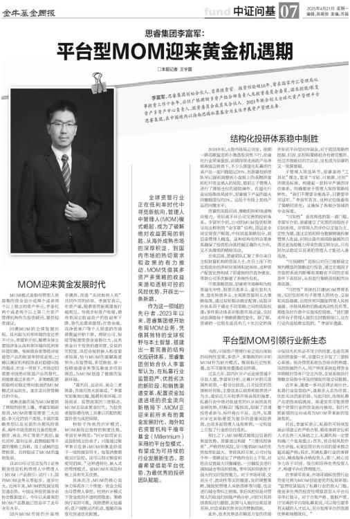 李富军,思睿集团创始合伙人、首席投资官。投资经验超18年,曾在国家外汇管理局从事投资工作十余年,后任广银理财多资产组合部负责人及投资委员会委员,诺亚控股/歌斐资产多资产中心负责人、投资委员会成员及合伙人。2021年联合创立全球化资产管理平台思睿集团,在中国境内以海南思瑞私募基金为主体开展资产管理业务。