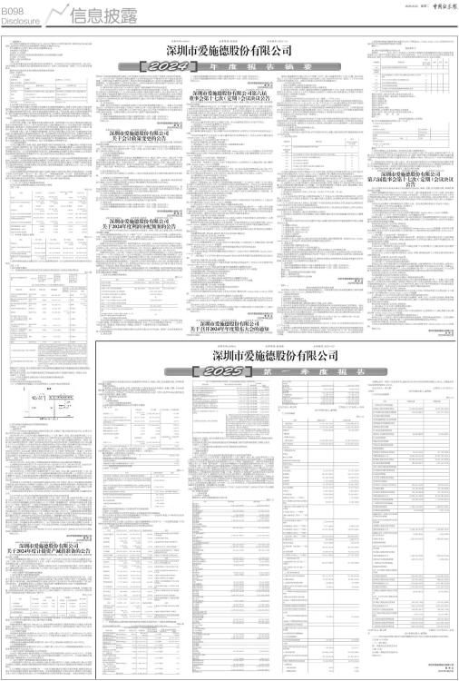 证券代码:002416 证券简称:爱施德 公告编号:2025-012 本公司及董事会全体成员保证信息披露的内容真实、准确、完整,没有虚假记载、误导性陈述或重大遗漏。 重要内容提示: 1、董事会、监事会及董事、监事、高级管理人员保证季度报告的真实、准确、完整,不存在虚假记载、误导性陈述或重大遗漏,并承担个别和连带的法律责任。 2、公司负责人、主管会计工作负责人及会计机构负责人(会计主管人员)声明:保证季度报告中财务信息的真实、准确、完整。 3、第一季度报告是否经审计 □是 √否 一、主要财务数据 (一) 主要会计数据和财务指标 公司是否需追溯调整或重述以前年度会计数据 □是 √否 ■ 说明:营业收入(元)取自四、季度财务报表 (一)财务报表2、合并利润表的营业总收入,包括营业收入(含主营业务收入及其他业务收入)、利息收入。 截止披露前一交易日的公司总股本: ■ 用最新股本计算的全面摊薄每股收益: ■ (二) 非经常性损益项目和金额 √适用 □不适用 单位:元 ■ 其他符合非经常性损益定义的损益项目的具体情况 □适用 √不适用 公司不存在其他符合非经常性损益定义的损益项目的具体情况。 将《公开发行证券的公司信息披露解释性公告第1号一一非经常性损益》中列举的非经常性损益项目界定为经常性损益项目的情况说明 □适用 √不适用 公司不存在将《公开发行证券的公司信息披露解释性公告第1号一一非经常性损益》中列举的非经常性损益项目界定为经常性损益的项目的情形。 (三) 主要会计数据和财务指标发生变动的情况及原因 √适用 □不适用 ■ 二、股东信息 (一) 普通股股东总数和表决权恢复的优先股股东数量及前十名股东持股情况表 单位:股 ■ ■ 持股5%以上股东、前10名股东及前10名无限售流通股股东参与转融通业务出借股份情况 □适用 √不适用 前10名股东及前10名无限售流通股股东因转融通出借/归还原因导致较上期发生变化 □适用 √不适用 (二) 公司优先股股东总数及前10名优先股股东持股情况表 □适用 √不适用 三、其他重要事项 √适用 (不适用 1、关于全资子公司与专业投资机构共同投资设立合伙企业的事项 2025年1月14日,公司召开第六届董事会第十六次(临时)会议、第六届监事会第十六次(临时)会议,审议通过了《关于与专业投资机构共同投资设立合伙企业的议案》,公司同意通过全资子公司深圳市爱施德科创控股有限公司(以下简称“爱施德科创”)和深圳市爱享投资有限公司(以下简称“爱享投资”)与深圳市智慧城市产投私募基金管理有限公司(以下简称“深智城产投”)共同投资设立深圳爱施德智城产业投资并购合伙企业(有限合伙)。本次合伙企业各个合伙人总认缴出资额为人民币5亿元,爱施德科创与爱享投资合计认缴4.9亿元,其中爱施德科创认缴4.89亿元,爱享投资认缴100万元;深智城产投认缴1,000万元。主要投资领域为智慧终端、人工智能和低空经济等产业链上下游。普通合伙人深智城产投和爱享投资为本合伙企业的执行事务合伙人,深智城产投为本合伙企业的管理人,爱施德科创为有限合伙人。 2025年2月19日,深圳爱施德智城产业投资并购合伙企业(有限合伙)办理完成工商登记并取得营业执照。2025年3月24日,深智城产投在中国证券投资基金业协会完成了私募投资基金备案手续,取得了《私募投资基金备案证明》。本产业基金各个合伙人总认缴出资额为人民币 5 亿元,已完成首期实缴出资5,191.8367 万元,尚未对外投资,后续出资按投资进度由投资决策委员会全体委员一致同意后补充实缴。 上述事项具体内容详见公司于2025年1月15日、2025年2月25日、2025年3月26日在巨潮资讯网上披露的相关公告。 四、季度财务报表 (一) 财务报表 1、合并资产负债表 编制单位:深圳市爱施德股份有限公司 单位:元 ■ ■ 法定代表人:黄文辉 主管会计工作负责人:米泽东 会计机构负责人:姜秀梅 2、合并利润表 单位:元 ■ 本期发生同一控制下企业合并的,被合并方在合并前实现的净利润为:0.00元,上期被合并方实现的净利润为:0.00元。 法定代表人:黄文辉 主管会计工作负责人:米泽东 会计机构负责人:姜秀梅 3、合并现金流量表 单位:元 ■ 法定代表人:黄文辉 主管会计工作负责人:米泽东 会计机构负责人:姜秀梅 (二) 2025年起首次执行新会计准则调整首次执行当年年初财务报表相关项目情况 □适用 √不适用 (三) 审计报告 第一季度报告是否经过审计 □是 √否 公司第一季度报告未经审计。 特此公告。 深圳市爱施德股份有限公司 董 事 会 2025年4月22日
