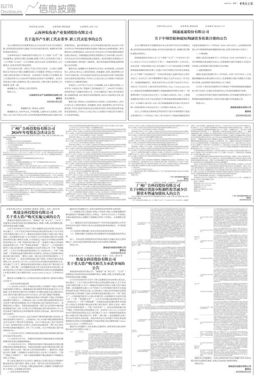 本公司董事会及全体董事保证本公告内容不存在任何虚假记载、误导性陈述或者重大遗漏,并对其内容的真实性、准确性和完整性承担法律责任。 云南神农农业产业集团股份有限公司(以下简称“公司”)第四届董事会、监事会任期已经届满,根据《中华人民共和国公司法》(以下简称“公司法”)《公司章程》及有关法律、法规的要求,公司董事会、监事会将进行换届选举。 经公司2025年第一次职工代表大会民主选举,公司职工森德敏先生当选为公司第五届董事会职工代表董事、李琦女士当选为公司第五届监事会职工代表监事。本次选举产生的职工代表董事、职工代表监事将与公司2024年年度股东会选举产生的董事、监事共同组成公司第五届董事会、第五届监事会,任期与第五届非职工代表董事、监事一致。 森德敏先生、李琦女士简历见附件。 特此公告。 云南神农农业产业集团股份有限公司 董事会 2025年4月22日 附件: 森德敏先生、李琦女士简历 森德敏先生:1992年出生,中国国籍,无境外永久居留权,本科学历。2015年8月至2018年12月在神农集团养殖事业部分别担任茨营猪场场长、越州猪场场长,2019年曲靖区域经理,2020年1月至2022年8月任神农集团养殖事业部林口铺6000头种猪场场长、老母寨9000头种猪场场长,2022年9月至2023年12月神农集团养殖事业部云南站区二母猪场副总经理负责管理4.5万头种母猪,2024年1月至2025年2月任养殖事业部云南战区二体系经理负责管理2.5万头母猪及配套下游育肥厂/服务部,现任神农集团养殖事业部种猪核心区总经理。 截至目前,森德敏先生直接持有公司28,200股股票,与实际控制人、持有公司5%以上股份的股东、其他董事、监事、高级管理人员不存在关联关系,不存在受到中国证监会及其他有关部门的处罚和证券交易所惩戒的情形,不存在《公司法》和《公司章程》中规定的不得担任公司董事的情形。 李琦女士,1977年11月出生,中国国籍,无永久境外居留权,大专学历,中级会计师。曾就职于昆明鼎盛化工厂。2002年7月加盟云南神农农业产业集团有限公司,先后在集团及下属公司任财务经理、采购部经理、审计部项目经理等职务,现任公司监事会主席、财务经理职务。 截至目前,李琦女士未直接持有公司股份,与实际控制人、持有公司5%以上股份的股东、其他董事、监事、高级管理人员不存在关联关系,不存在受到中国证监会及其他有关部门的处罚和证券交易所惩戒的情形,不存在《公司法》和《公司章程》中规定的不得担任公司监事的情形。
