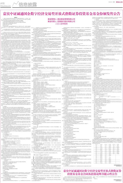 嘉实中证诚通国企数字经济交易型开放式指数证券投资基金基金合同及招募说明书提示性公告