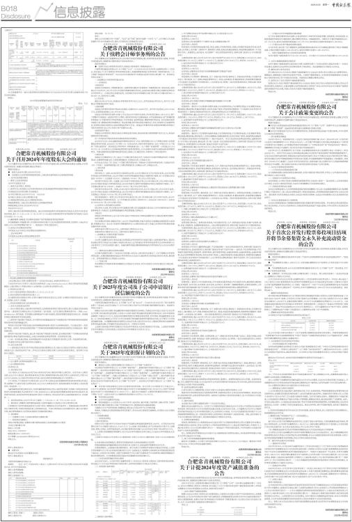 ■ ■ 注:①新能源汽车一体化大型压铸项目延期事项经公司于2025年2月26日召开第五届董事会第十次会议审议通过。 附表2: 2024年度变更募集资金投资项目情况表 单位: 万元 ■ 证券代码:603768 证券简称:常青股份 公告编号:2025-027 合肥常青机械股份有限公司 关于召开2024年年度股东大会的通知 本公司董事会及全体董事保证本公告内容不存在任何虚假记载、误导性陈述或者重大遗漏,并对其内容的真实性、准确性和完整性承担法律责任。 重要内容提示: ● 股东大会召开日期:2025年5月19日 ● 本次股东大会采用的网络投票系统:上海证券交易所股东大会网络投票系统 一、召开会议的基本情况 (一)股东大会类型和届次 2024年年度股东大会 (二)股东大会召集人:董事会 (三)投票方式:本次股东大会所采用的表决方式是现场投票和网络投票相结合的方式 (四)现场会议召开的日期、时间和地点 召开的日期时间:2025年5月19日 14点30分 召开地点:股份公司办公楼3楼323室 (五)网络投票的系统、起止日期和投票时间。 网络投票系统:上海证券交易所股东大会网络投票系统 网络投票起止时间:自2025年5月19日 至2025年5月19日 采用上海证券交易所网络投票系统,通过交易系统投票平台的投票时间为股东大会召开当日的交易时间段,即9:15-9:25,9:30-11:30,13:00-15:00;通过互联网投票平台的投票时间为股东大会召开当日的9:15-15:00。 (六)融资融券、转融通、约定购回业务账户和沪股通投资者的投票程序 涉及融资融券、转融通业务、约定购回业务相关账户以及沪股通投资者的投票,应按照《上海证券交易所上市公司自律监管指引第1号 一 规范运作》等有关规定执行。 (七)涉及公开征集股东投票权 本次股东大会不涉及公开征集股东投票权事宜。 二、会议审议事项 本次股东大会审议议案及投票股东类型 ■ 1、各议案已披露的时间和披露媒体 上述议案已经公司第五届董事会第十三次会议审议通过,具体内容详见公司 于2025年4月28日刊登于上海证券交易所网站(http://www.sse.com.cn)和公司指定的信息披露媒体《上海证券报》《中国证券报》《证券时报》《证券日报》的相关公告。 2、特别决议议案:无 3、对中小投资者单独计票的议案:7、8、10、11、12、13、14 4、涉及关联股东回避表决的议案:7、11 应回避表决的关联股东名称:议案7回避的关联股东吴应宏;议案11回避的关联股东吴应宏、吴应举、朱慧娟、吴凤平、邓德彪 5、涉及优先股股东参与表决的议案:无 三、股东大会投票注意事项 (一)本公司股东通过上海证券交易所股东大会网络投票系统行使表决权的,既可以登陆交易系统投票平台(通过指定交易的证券公司交易终端)进行投票,也可以登陆互联网投票平台(网址:vote.sseinfo.com)进行投票。首次登陆互联网投票平台进行投票的,投资者需要完成股东身份认证。具体操作请见互联网投票平台网站说明。 (二)持有多个股东账户的股东,可行使的表决权数量是其名下全部股东账户所持相同类别普通股和相同品种优先股的数量总和。 持有多个股东账户的股东通过本所网络投票系统参与股东大会网络投票的,可以通过其任一股东账户参加。投票后,视为其全部股东账户下的相同类别普通股和相同品种优先股均已分别投出同一意见的表决票。 持有多个股东账户的股东,通过多个股东账户重复进行表决的,其全部股东账户下的相同类别普通股和相同品种优先股的表决意见,分别以各类别和品种股票的第一次投票结果为准。 (三)同一表决权通过现场、本所网络投票平台或其他方式重复进行表决的,以第一次投票结果为准。 (四)股东对所有议案均表决完毕才能提交。 四、会议出席对象 (一)股权登记日收市后在中国证券登记结算有限责任公司上海分公司登记在册的公司股东有权出席股东大会(具体情况详见下表),并可以以书面形式委托代理人出席会议和参加表决。该代理人不必是公司股东。 ■ (二)公司董事、监事和高级管理人员。 (三)公司聘请的律师。 (四)其他人员 五、会议登记方法 1.法人股东:法人股东应由法定代表人或者法定代表人委托的代理人出席会议。法定代表人出席会议的,应出示本人身份证、能证明其具有法定代表人资格的有效证明;委托代理人出席会议的,代理人应出示本人身份证、法人股东单位的法定代表人依法出具的书面授权委托书(详见附件一) 2.个人股东:个人股东亲自出席会议的,应出示本人身份证或其他能够表明其身份的有效证件或证明、股票账户卡;委托代理人出席会议的,应出示本人有效身份证件、股东授权委托书及委托人身份证复印件(详见附件一)。 3.融资融券投资者出席会议的,应持有融资融券相关证券公司的营业执照、证券账户证明及其向投资者出具的授权委托书;投资者为个人的,还应持有本人身份证或其他能够表明其身份的有效证件,投资者为单位的,还应持有本单位营业执照、参会人员身份证、单位法定代表人出具的授权委托书(详见附件一)。 4.参会登记时间:2025年5月13日(星期二)上午9:30-11:30 下午:13:00-16:00 5.登记地点:安徽省合肥市肥西县新港工业园浮莲路312号股份公司办公楼3楼323室 6.异地股东可采用传真或信函的方式进行登记(需提供有关证件复印件),传真或信函以登记时间内公司收到为准,并请在传真或信函上注明联系电话。为保证本次股东大