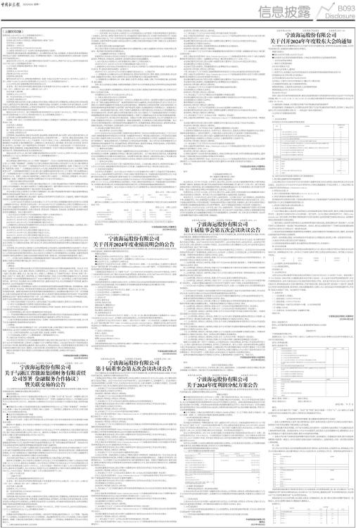 宁波海运股份有限公司 关于召开2024年年度股东大会的通知 |