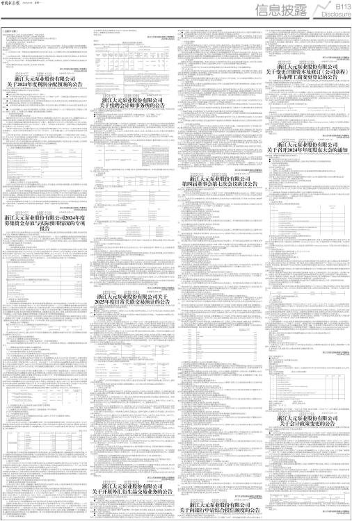体股东特别是中小股东合法权益的情形。同意该事项。 本项议案的表决结果:同意3票,反对0票、弃权0票。 13、审议通过《关于开展外汇衍生品交易业务的可行性分析报告》 本项议案的表决结果:同意3票,反对0票、弃权0票。 14、审议通过《2025年第一季度报告》 监事会书面审核意见如下: 根据《证券法》和上海证券交易所《关于做好主板上市公司2025年第一季度报告披露工作的重要提醒》等有关规定,我们作为公司监事,对公司编制的2025年第一季度报告进行了认真严格的审核,并作出书面审核意见如下: (一)公司2025年第一季度报告的编制和审议符合法律、法规、《公司章程》和公司内部管理制度的有关规定; (二)公司2025年第一季度报告的内容和格式符合中国证监会和上海证券交易所的各项规定,所包含的信息从各方面真实地反映了公司报告期的经营管理和财务状况; (三)参与公司2025年第一季度报告编制和审议的人员严格遵守保密规定,无损害公司和投资者利益的行为发生。 本项议案的表决结果:同意3票,反对0票、弃权0票。 特此公告。 浙江大元泵业股份有限公司监事会 2025年4月28日 证券代码:603757 证券简称:大元泵业 公告编号:2025-010 债券代码:113664 债券简称:大元转债 浙江大元泵业股份有限公司 关于2024年度利润分配预案的公告 本公司董事会及全体董事保证本公告内容不存在任何虚假记载、误导性陈述或者重大遗漏,并对其内容的真实性、准确性和完整性承担个别及连带责任。 重要内容提示: ●每股分配比例:每股派发现金红利0.2元(含税); ● 本次利润分配以浙江大元泵业股份有限公司(以下简称“公司”)实施权益分派股权登记日登记的总股本为基数,具体日期将在权益分派实施公告中明确。 ● 在实施权益分派的股权登记日前,因各种原因致使公司总股本发生变动的,拟维持每股分配比例不变,相应调整分配总额,并将另行公告具体调整情况。 ● 本次利润分配预案已经公司第四届董事会第七次会议审议通过,尚需提交公司2024年年度股东大会审议。 ● 公司没有触及《上海证券交易所股票上市规则(2024年4月修订)》(以下简称《股票上市规则》)第9.8.1条第一款第(八)项规定的可能被实施其他风险警示的情形。 一、利润分配预案内容 (一)利润分配预案的具体内容 截至2024年12月31日,公司母公司报表中期末未分配利润为人民币165,482,823.31元。经董事会决议,公司2024年年度拟以实施权益分派股权登记日登记的总股本为基数分配利润,本次利润分配预案如下: 公司拟向全体股东每10股派发现金红利2元(含税)。截至2025年3月31日,公司总股本164,746,905股,以此计算合计拟派发现金红利32,949,381.00元(含税)。本年度公司现金分红(包括中期已分配的现金红利)总额115,321,632.00元(含税)。 本年度以现金为对价,采用集中竞价方式已实施的股份回购金额34,993,946.40元(不含印花税及交易佣金等费用),现金分红和回购金额合计150,315,578.40元,占本年度归属于上市公司股东净利润的比例58.88%。 公司以现金为对价,采用集中竞价方式回购股份并于本年度注销的回购(以下简称回购并注销)金额41,677,676.40元(不含印花税及交易佣金等费用),现金分红和回购并注销金额合计156,999,308.40元,占本年度归属于上市公司股东净利润的比例61.50%。 如在2025年3月31日至实施权益分派股权登记日期间,因各种原因致使公司总股本发生变动的,公司拟维持每股分配比例不变,相应调整分配总额,并将另行公告具体调整情况。 本次利润分配预案尚需提交公司股东大会审议。 (二)是否可能触及其他风险警示情形 ■ 二、公司履行的决策程序 (一)董事会会议的召开、审议和表决情况 公司于2025年4月24日召开第四届董事会第七次会议,审议通过本次利润分配预案,本次预案符合公司章程规定的利润分配政策和公司已披露的股东回报规划。 (二)监事会意见 监事会认为:公司本次分配预案基于2024年度财务状况和经营成果,综合考虑了公司实际盈利水平、现金流状况、未来发展资金需求及股东合理回报需求等因素,符合《公司章程》中关于利润分配的规定及公司既定的股东回报规划。预案提出的利润分配形式、现金分红比例及决策程序等内容,符合法律法规及监管要求,兼顾了公司持续发展与股东短期及长期利益,不存在损害公司及股东特别是中小股东利益的情形。同意该议案。 三、相关风险提示 本次利润分配预案综合考虑了公司未来发展的资金需求和融资规划,不会对公司的每股收益、经营现金流产生重大影响,不会影响公司正常经营和长期发展。敬请广大投资者注意投资风险。 特此公告。 浙江大元泵业股份有限公司董事会 2025年4月28日 证券代码:603757 证券简称:大元泵业 公告编号:2025-011 债券代码:113664 债券简称:大元转债 浙江大元泵业股份有限公司2024年度募集资金存放与实际使用情况的专项报告 本公司董事会及全体董事保证本公告内容不存在任何虚假记载、误导性陈述或者重大遗漏,并对其内容的真实性、准确性和完整性承担个别及连带责任。 根据中国证券监督管理委员会《上市公司监管指引第2号一一上市公司募集资金管理和使用的监管要求(2022年修订)》(证监会公告〔2022〕15号)、《上海证券交易所上市公司自律监管指引第1号一一规范运作》以及《上海证券交易所上市公司自律监管指南第1
