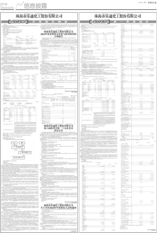 证券代码:002319 证券简称:乐通股份 公告编号:2025-035 珠海市乐通化工股份有限公司 一、重要提示 本年度报告摘要来自年度报告全文,为全面了解本公司的经营成果、财务状况及未来发展规划,投资者应当到证监会指定媒体仔细阅读年度报告全文。 所有董事均已出席了审议本报告的董事会会议。 非标准审计意见提示 □适用 √不适用 董事会审议的报告期利润分配预案或公积金转增股本预案 □适用 √不适用 公司计划不派发现金红利,不送红股,不以公积金转增股本。 董事会决议通过的本报告期优先股利润分配预案 □适用 √不适用 二、公司基本情况 1、公司简介 ■ 2、报告期主要业务或产品简介 (一)公司主要业务及主要产品 公司主要业务分为油墨制造业务及互联网广告营销业务。 在油墨制造板块,公司主要从事各类印刷油墨技术开发、生产、销售。公司主要产品为中高档凹印油墨,广泛应用于饮料包装、食品包装及卷烟包装,少量应用于电子制品等行业。互联网广告营销板块,公司以品牌广告客户需求为导向,通过成熟的品牌广告投放服务流程,为客户提供广告投放服务。 (二)公司主要经营模式 1、油墨制造经营模式 (1)采购模式 公司实行“以产定购”的采购模式,即根据公司销售计划和实际库存情况,定期制定申购单,再由采购部及时完成各种原材料采购,现通过合理资源配置,已形成高效的采购、生产、销售循环模式。公司从事油墨生产多年,与各主要供应商均保持着长期、稳定的合作关系,原料供应充足、渠道畅通,已建立稳定可靠的采购网络。 (2)生产模式 公司生产模式主要采取“以销定产”和“定额储备”。“以销定产”模式,即根据客户订单情况,下达生产指令单,并组织有序生产,其所产产品具有个性化和差异化特点,为非标准件产品。“定额储备”模式,即根据库存管理经验和市场销售情况,定期编制产品储备定额,根据定额生产一定规模的标准件产品,通过客户试用认可并建立起长期稳定的合作关系后,调整为非标准件产品。公司针对不同层级的客户采取不同生产模式,不仅可扩大公司的客户资源,增加产品种类,更有利于提高公司生产效率,降低经营成本,满足各类客户对产品性能和需求量。 (3)销售模式 公司采取直接面向客户的销售模式,以建立公司营销中心为核心的市场销售体系,设立多个销售网点,完成油墨市场有效覆盖,及时提供优质的售后服务。经过多年油墨制造的经验积累和沉淀,目前公司已经形成一套较为完善的生产销售体系,既能够高效生产优质产品,又能够满足客户个性化需求,为各类型的客户提供专业咨询服务。 2、互联网广告营销业务经营模式 公司主要是通过创新性精准螺旋式迭代投放方法,以技术和数据驱动流量运营与精准营销,优化渠道流量实现低成本变现,以科学方法对投放进行规范、有效、及时的迭代更新。公司通过构建大数据洞察、用户行为建模、广告整合营销、客户品牌效果推广优化、营销大数据自动优化等手段,帮助来实现广告客户的营销目标。依托见效快、效率高的AI技术自动化、且投放过程中优化多种广告形式,实现广告交互性增强体验,为母婴、电商、文旅、教育、汽车、快消品等行业客户提供颇具商业价值的一体化品牌整合营销服务。 3、主要会计数据和财务指标 (1) 近三年主要会计数据和财务指标 公司是否需追溯调整或重述以前年度会计数据 □是 √否 单位:元 ■ (2) 分季度主要会计数据 单位:元 ■ 上述财务指标或其加总数是否与公司已披露季度报告、半年度报告相关财务指标存在重大差异 □是 √否 4、股本及股东情况 (1) 普通股股东和表决权恢复的优先股股东数量及前10名股东持股情况表 单位:股 ■ 持股5%以上股东、前10名股东及前10名无限售流通股股东参与转融通业务出借股份情况 □适用 √不适用 前10名股东及前10名无限售流通股股东因转融通出借/归还原因导致较上期发生变化 □适用 √不适用 (2) 公司优先股股东总数及前10名优先股股东持股情况表 □适用 √不适用 公司报告期无优先股股东持股情况。 (3) 以方框图形式披露公司与实际控制人之间的产权及控制关系 ■ 5、在年度报告批准报出日存续的债券情况 □适用 √不适用 三、重要事项 (1)关于特定对象发行股票事项 公司于2023年3月7日召开的第六届董事会第八次会议、第六届监事会第八次会议及2023年3月23日召开的2023年第一次临时股东大会审议通过《关于公司2023年度向特定对象发行股票方案的议案》、《关于提请股东大会授权董事会及董事会授权人士办理公司向特定对象发行A股股票相关事宜的议案》等相关议案,公司拟向特定对象发行股票,本次向特定对象发行的发行对象为深圳市优悦美晟企业管理有限公司(以下简称“优悦美晟”),优悦美晟系公司控股股东深圳市大晟资产管理有限公司(以下简称“大晟资产”)的全资子公司,为公司关联方。发行对象将以现金方式认购本次向特定对象发行的股票。 本次向特定对象发行股票的方案等相关议案分别经2023年5月4日召开的第六届董事会第十次会议、第六届监事会第十次会议和2023年8月11日召开的第六届董事会第十一次会议、第六届监事会第十一次会议修订。 2023年11月10日,公司收到中国证券监督管理委员会于2023年11月7日出具的《关于同意珠海市乐通化工股份