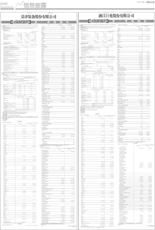 证券代码:603279 证券简称:景津装备 本公司董事会及全体董事保证本公告内容不存在任何虚假记载、误导性陈述或者重大遗漏,并对其内容的真实性、准确性和完整性承担法律责任。 重要内容提示 公司董事会、监事会及董事、监事、高级管理人员保证季度报告内容的真实、准确、完整,不存在虚假记载、误导性陈述或重大遗漏,并承担个别和连带的法律责任。 公司负责人、主管会计工作负责人及会计机构负责人(会计主管人员)保证季度报告中财务信息的真实、准确、完整。 第一季度财务报表是否经审计 □是 √否 一、主要财务数据 (一)主要会计数据和财务指标 单位:元 币种:人民币 ■ (二)非经常性损益项目和金额 √适用 □不适用 单位:元 币种:人民币 ■ 对公司将《公开发行证券的公司信息披露解释性公告第1号一一非经常性损益》未列举的项目认定为非经常性损益项目且金额重大的,以及将《公开发行证券的公司信息披露解释性公告第1号一一非经常性损益》中列举的非经常性损益项目界定为经常性损益的项目,应说明原因。 □适用 √不适用 (三)主要会计数据、财务指标发生变动的情况、原因 √适用 □不适用 ■ 二、股东信息 (一)普通股股东总数和表决权恢复的优先股股东数量及前十名股东持股情况表 单位:股 ■ 持股5%以上股东、前10名股东及前10名无限售流通股股东参与转融通业务出借股份情况 □适用 √不适用 前10名股东及前10名无限售流通股股东因转融通出借/归还原因导致较上期发生变化 □适用 √不适用 三、其他提醒事项 需提醒投资者关注的关于公司报告期经营情况的其他重要信息 √适用 □不适用 公司于2025年2月25日召开第四届董事会第十六次(临时)会议审议通过了《关于公司2024年度“提质增效重回报”行动方案半年度评估报告的议案》。具体详见公司于2025年2月26日披露的《景津装备股份有限公司2024年度“提质增效重回报”行动方案半年度评估报告》(公告编号:2025-002)。 四、季度财务报表 (一)审计意见类型 □适用 √不适用 (二)财务报表 合并资产负债表 2025年3月31日 编制单位:景津装备股份有限公司 单位:元 币种:人民币 审计类型:未经审计 ■ 公司负责人:姜桂廷 主管会计工作负责人:李东强 会计机构负责人:李东强 合并利润表 2025年1一3月 编制单位:景津装备股份有限公司 单位:元 币种:人民币 审计类型:未经审计 ■ 本期发生同一控制下企业合并的,被合并方在合并前实现的净利润为:0元,上期被合并方实现的净利润为:0 元。 公司负责人:姜桂廷 主管会计工作负责人:李东强 会计机构负责人:李东强 合并现金流量表 2025年1一3月 编制单位:景津装备股份有限公司 单位:元 币种:人民币 审计类型:未经审计 ■ 公司负责人:姜桂廷 主管会计工作负责人:李东强 会计机构负责人:李东强 (三)2025年起首次执行新会计准则或准则解释等涉及调整首次执行当年年初的财务报表 □适用 √不适用 特此公告 景津装备股份有限公司董事会 2025年4月28日
