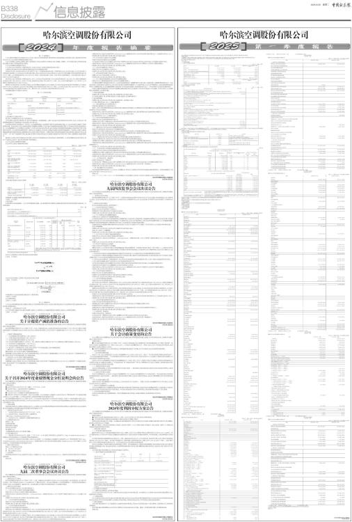 公司代码:600202 公司简称:哈空调 哈尔滨空调股份有限公司 第一节 重要提示 1、本年度报告摘要来自年度报告全文,为全面了解本公司的经营成果、财务状况及未来发展规划,投资者应当到上海证券交易所网站www.sse.com.cn网站仔细阅读年度报告全文。 2、本公司董事会、监事会及董事、监事、高级管理人员保证年度报告内容的真实性、准确性、完整性,不存在虚假记载、误导性陈述或重大遗漏,并承担个别和连带的法律责任。 3、公司全体董事出席董事会会议。 4、中审亚太会计师事务所(特殊普通合伙)为本公司出具了标准无保留意见的审计报告。 5、董事会决议通过的本报告期利润分配预案或公积金转增股本预案 2024年8月14日、2024年8月30日公司分别召开八届十二次董事会和2024年第三次临时股东大会,会议审议通过了公司《2024年半年度利润分配预案》,公司2024年半年度分配方案为:按公司2024年6月30日总股本38,334.0672万股为基数,按每10股派发现金红利0.10元(含税),共计派发现金红利3,833,406.72元(含税),本次利润分配不送股、不进行资本公积转增股本。此次利润分配方案已于 2024年10月22日实施完毕。 经中审亚太会计师事务所(特殊普通合伙)审计,公司2024年度实现归属于母公司股东的净利润7,355,536.14元,扣除本期提取的法定盈余公积1,485,594.92元、2024年半年度已派发的现金红利3,833,406.72元(含税),加上年初未分配利润211,417,202.88 元,可供股东分配的利润为213,453,737.38元。 根据有关法律法规及《公司章程》的规定,综合考虑股东利益及公司长远发展,公司拟定的2024年度利润分配预案为:公司拟以2024年12月31日总股本38,334.0672万股为基数,按每10股派发现金红利0.10元(含税),共计派发现金红利3,833,406.72元(含税),占2024年度归属于母公司股东净利润52.12%。剩余209,620,330.66元未分配利润结转到2025年度。 本预案尚需提交公司股东大会审议。 第二节 公司基本情况 1、公司简介 ■ ■ 2、报告期公司主要业务简介 报告期,公司所属证监会行业门类为制造业。 公司从事的主营业务为各种高、中、低压空冷器的设计、制造和销售。主要产品包括石化空冷器和电站空冷器。此外,公司还设计、制造和销售核电站空气处理机组产品及其他工业空调产品。 在全球经济持续扩张的驱动下,石油化工、电力能源等基础工业领域的产能扩张及基础设施升级,为工业空冷设备行业提供了稳定的需求支撑。新兴经济体工业化进程加速推进,其能源结构调整与产业升级对高效换热系统的刚性需求,正在释放出可观的市场增量空间。在全球能源转型与工业智能化升级背景下,空冷行业正通过新材料应用、强化传热技术及智能控制系统集成,加速向高效节能、环保智控方向迭代。在全球经济回暖的背景下,国外企业正加速进入中国市场,导致空冷设备行业的竞争越发激烈。与此同时,国家大力推动高端装备制造业的高质量发展,鼓励国内企业主动参与国际市场竞争。凭借在国内市场积累的成熟技术和实践经验,我国空冷企业正重点开拓“一带一路”沿线国家的市场,通过输出先进的空冷技术和设备,不仅能提升我国在全球市场中的占有率,还能增强行业国际影响力。 报告期,公司所从事的主要业务未发生变化,仍为石化空冷器和电站空冷品的设计、制造和销售。公司的经营模式也未发生变化,仍为“产品直销、以销定产、按订单分批采购”的经营模式。 3、公司主要会计数据和财务指标 3.1近3年的主要会计数据和财务指标 单位:元 币种:人民币 ■ 3.2报告期分季度的主要会计数据 单位:元 币种:人民币 ■ 季度数据与已披露定期报告数据差异说明 □适用 √不适用 4、股东情况 4.1报告期末及年报披露前一个月末的普通股股东总数、表决权恢复的优先股股东总数和持有特别表决权股份的股东总数及前 10 名股东情况 单位: 股 ■ 4.2公司与控股股东之间的产权及控制关系的方框图 √适用 □不适用 ■ 4.3公司与实际控制人之间的产权及控制关系的方框图 √适用 □不适用 ■ 4.4报告期末公司优先股股东总数及前10 名股东情况 □适用 √不适用 5、公司债券情况 □适用 √不适用 第三节 重要事项 1、公司应当根据重要性原则,披露报告期内公司经营情况的重大变化,以及报告期内发生的对公司经营情况有重大影响和预计未来会有重大影响的事项。 详见本节一、经营情况讨论与分析 2、公司年度报告披露后存在退市风险警示或终止上市情形的,应当披露导致退市风险警示或终止上市情形的原因。 □适用 √不适用 证券代码:600202 证券简称:哈空调 编号:临2025-020 哈尔滨空调股份有限公司 关于计提资产减值准备的公告 本公司董事会及全体董事保证本公告内容不存在任何虚假记载、误导性陈述或者重大遗漏,并对其内容的真实性、准确性和完整性承担个别及连带责任。 哈尔滨空调股份有限公司(以下简称“公司”)九届二次董事会会议、九届四次监事会会议审议通过了《关于2024年计提资产减值准备的提案》,同意根据《企业会计准则》及公司会计政策的相关规定,对母公司资产计提减值准备12,972,791.73元,相关情况公告如下: 一、计提资产减值准备情况 (一)对应收账款计提坏账准备11,728,130.88元; (二)对预付账款计提坏账准备2,286,730.21元; (三)对应收票据计提坏账准备-94,360.76元; (四)对存货计提跌价准备313,132